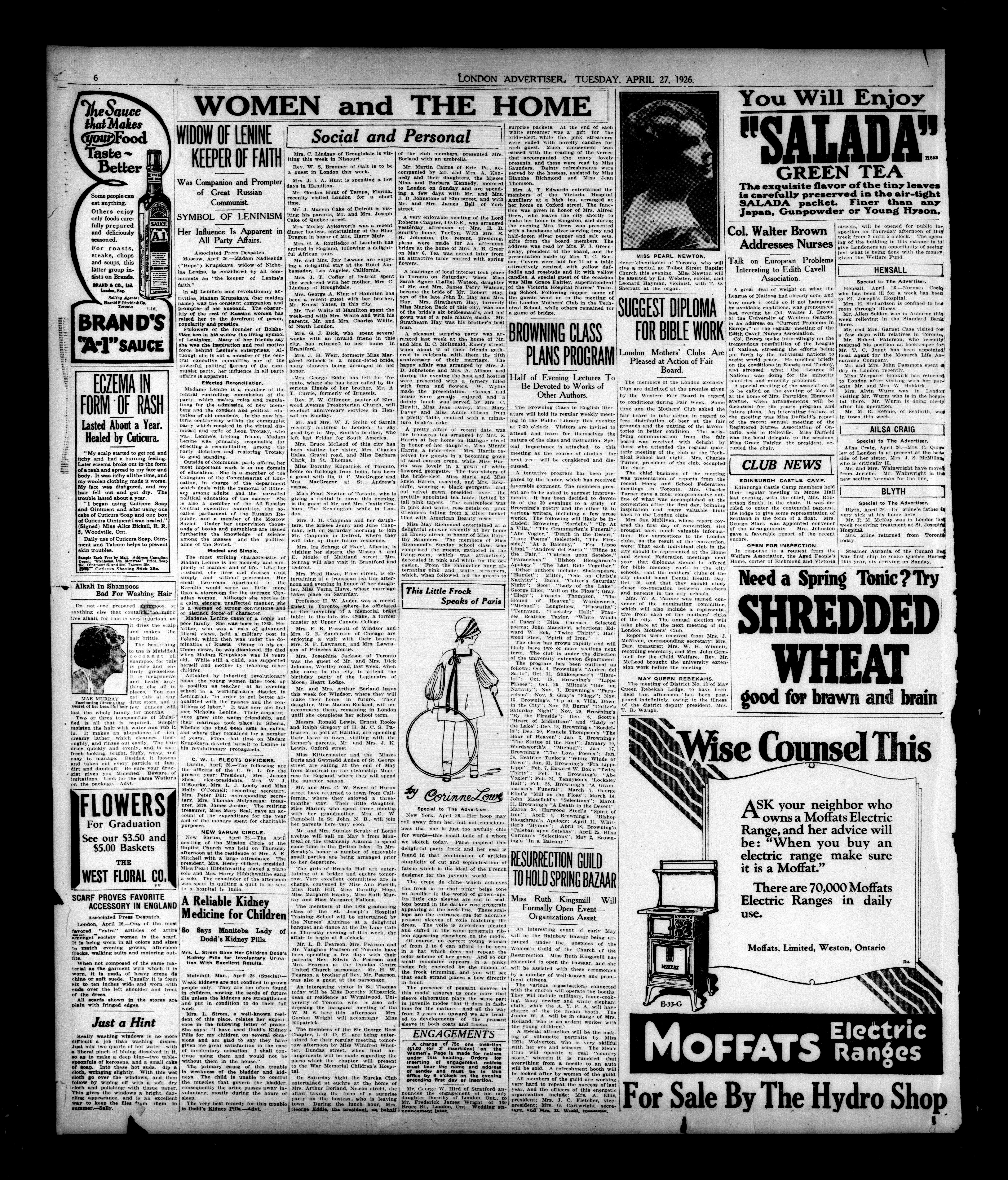 London, Ontario : London Advertiser Company, Limited, [1926]; 14 images, 0 avec recherche en texte intégral