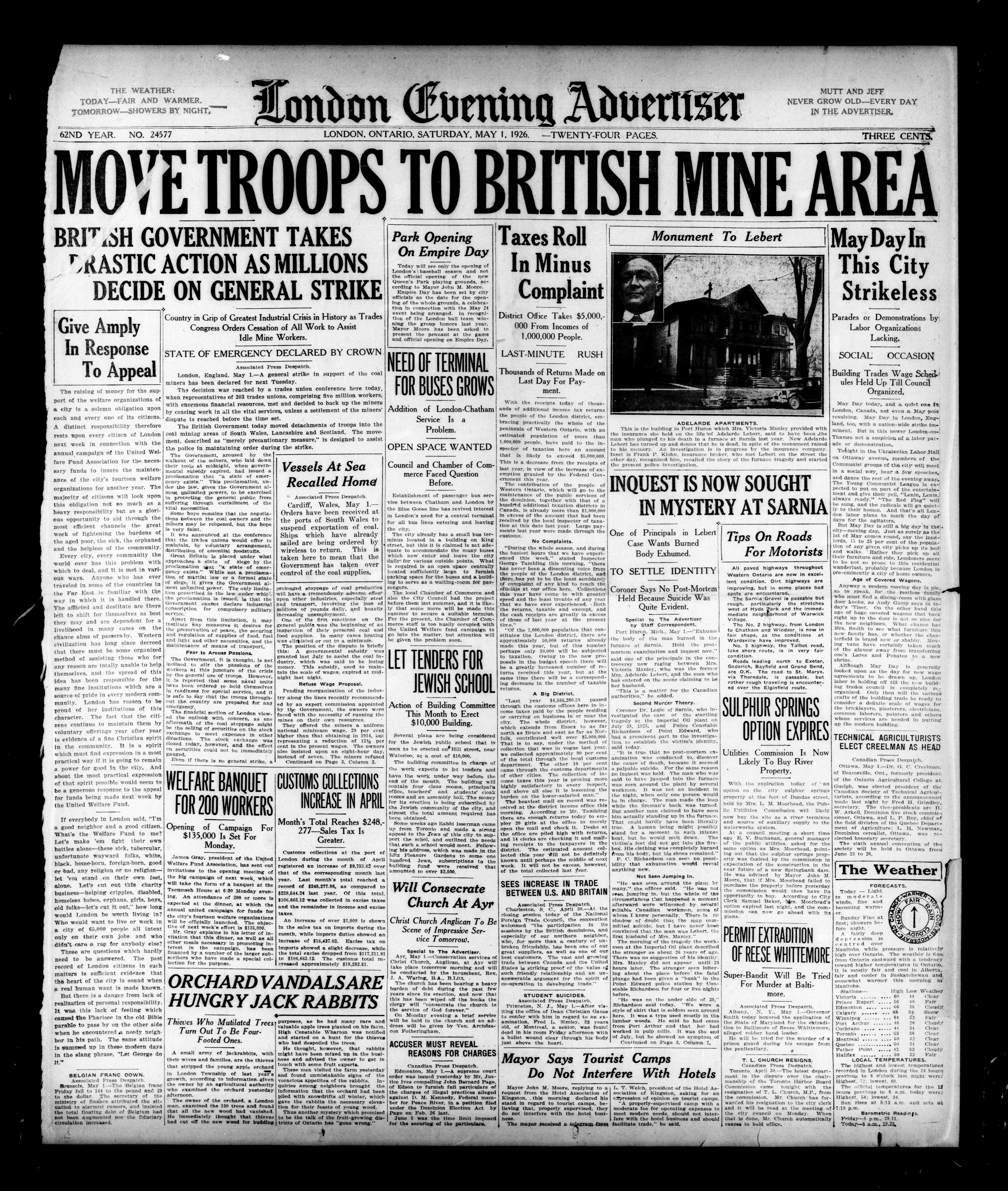 London evening advertiser : 62nd Year, No. 24577 (May 1, 1926) - Adresse bibliographique