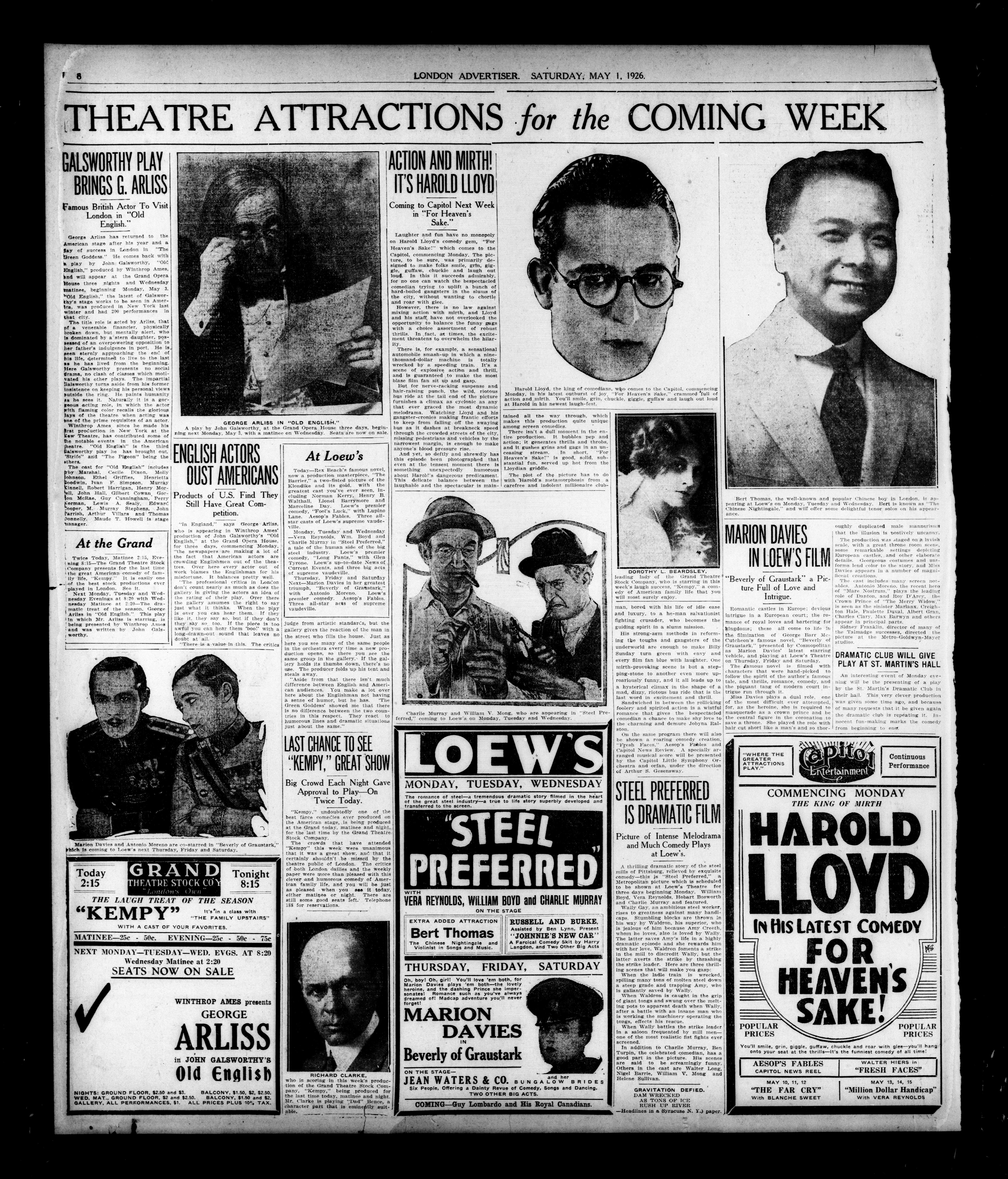 London, Ontario : London Advertiser Company, Limited, [1926]; 24 images, 0 avec recherche en texte intégral