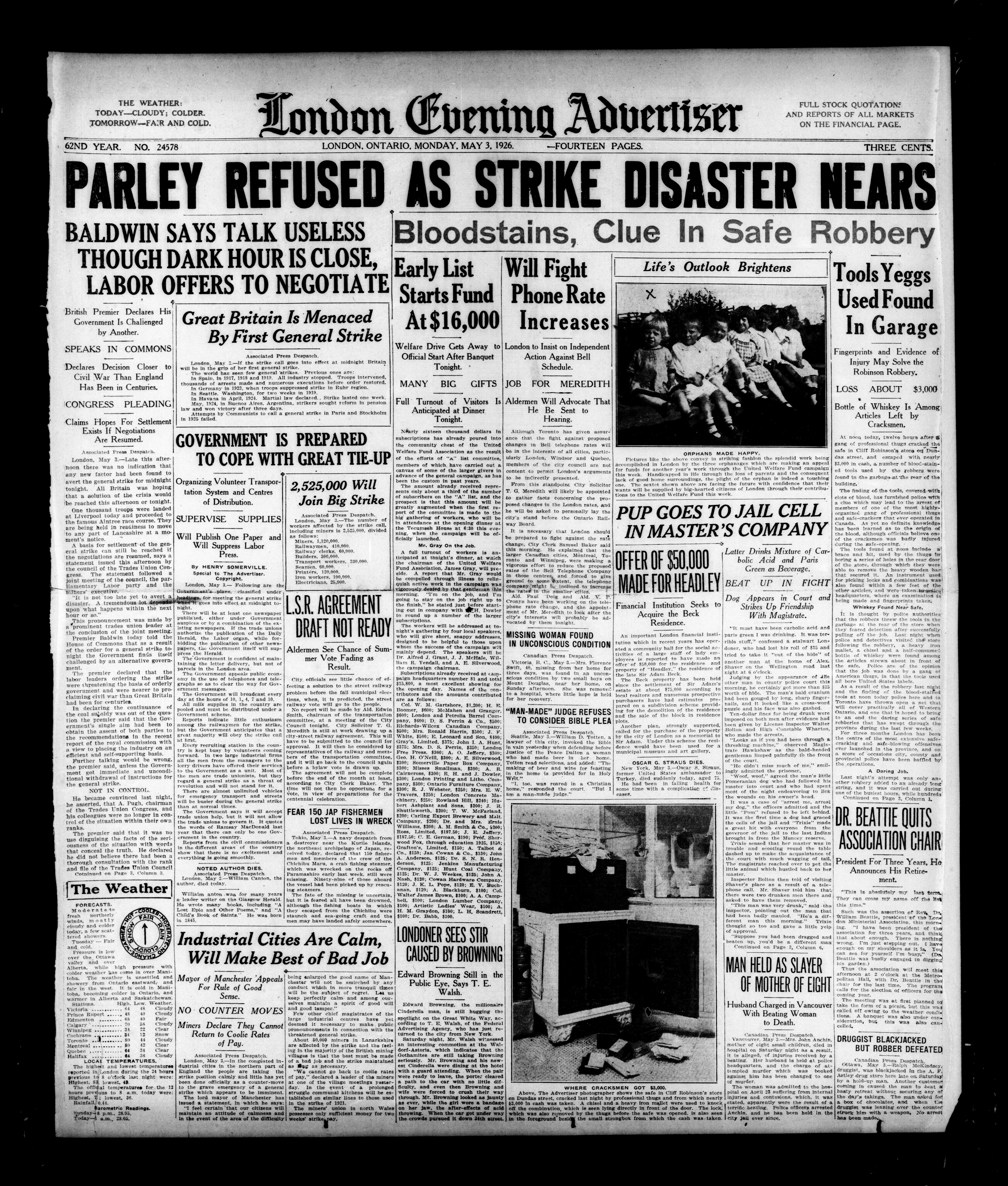 London evening advertiser : 62nd Year, No. 24578 (May 3, 1926) - Adresse bibliographique