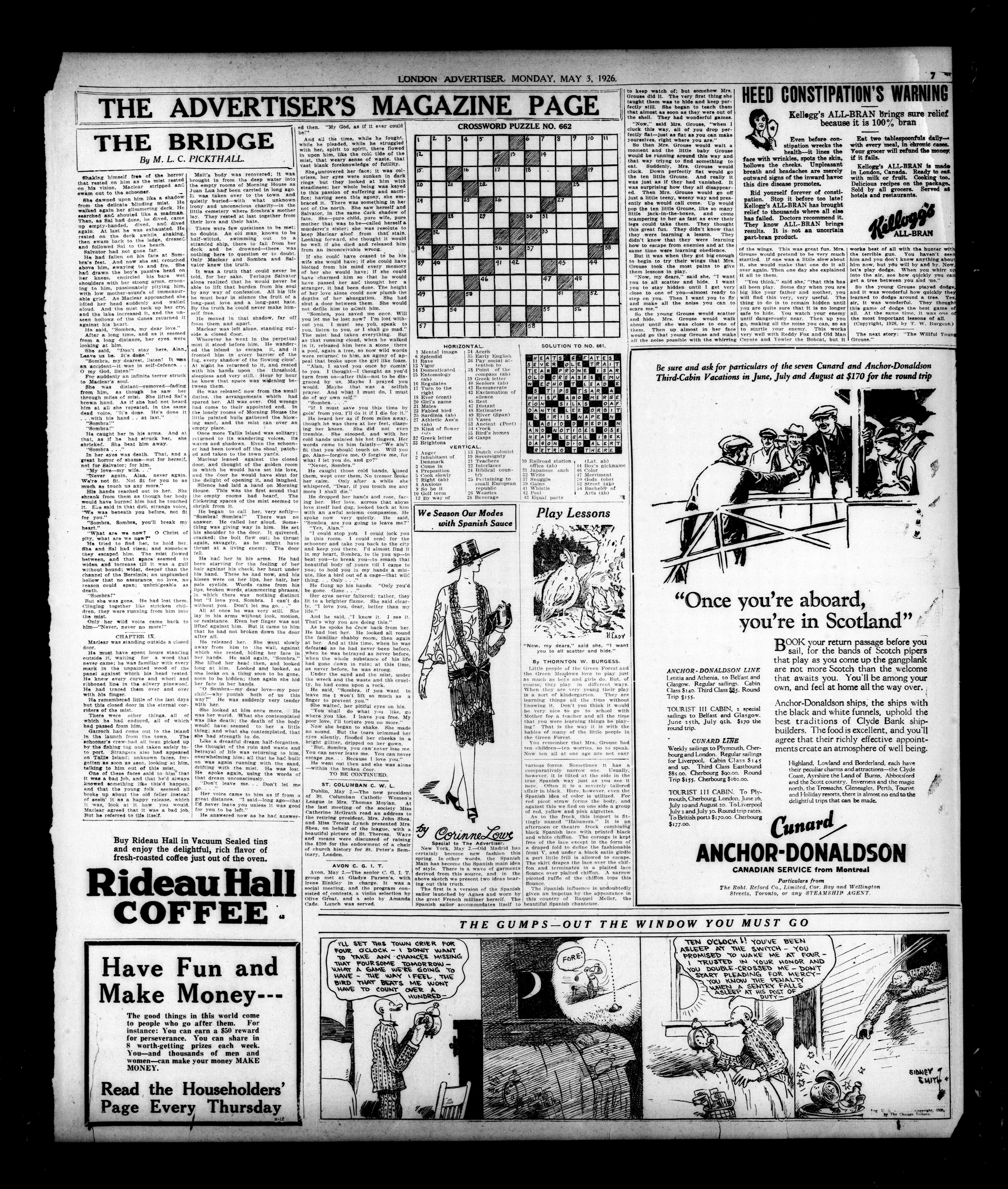 London, Ontario : London Advertiser Company, Limited, [1926]; 14 images, 0 avec recherche en texte intégral