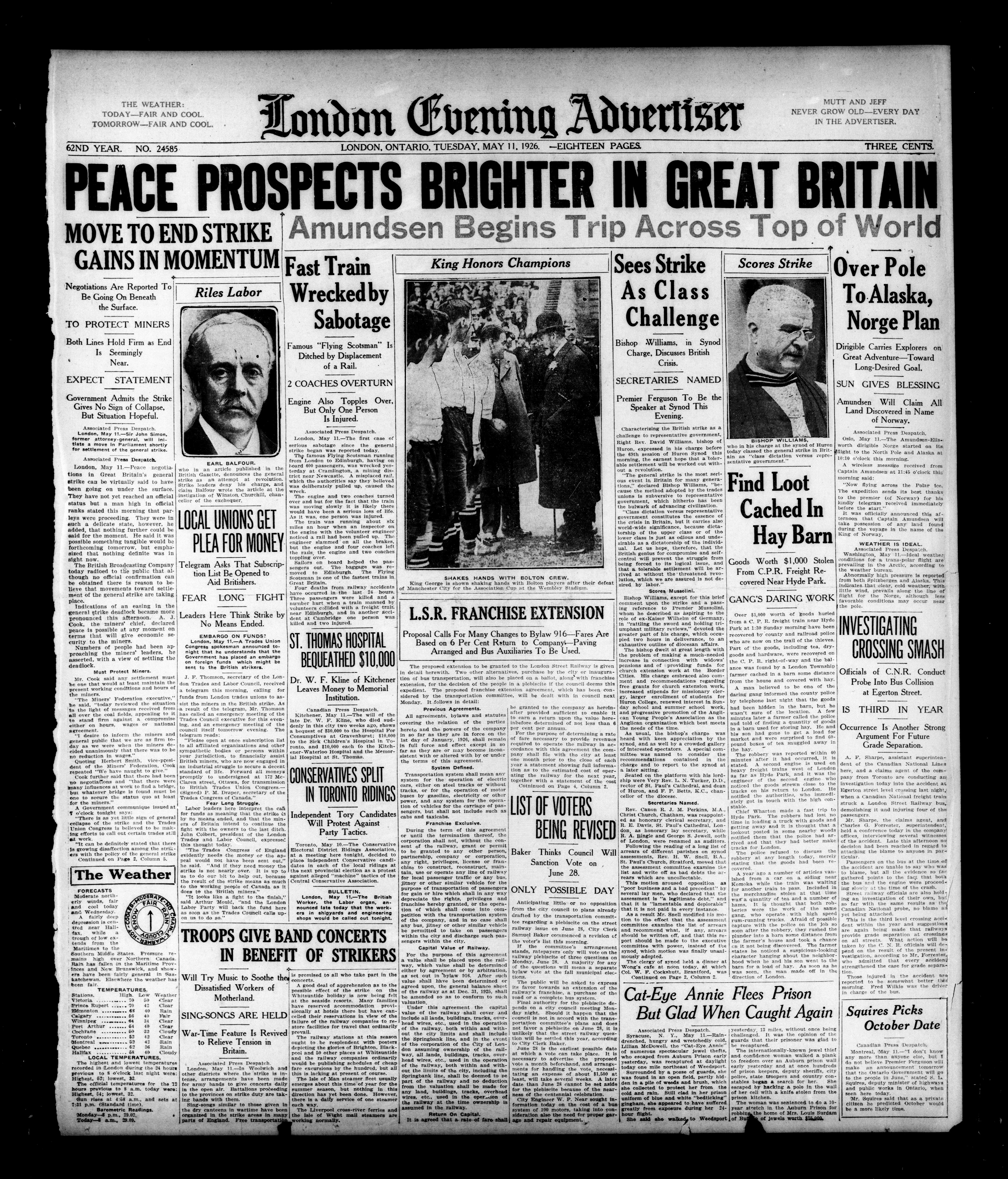 London evening advertiser : 62nd Year, No. 24585 (May 11, 1926) - Adresse bibliographique