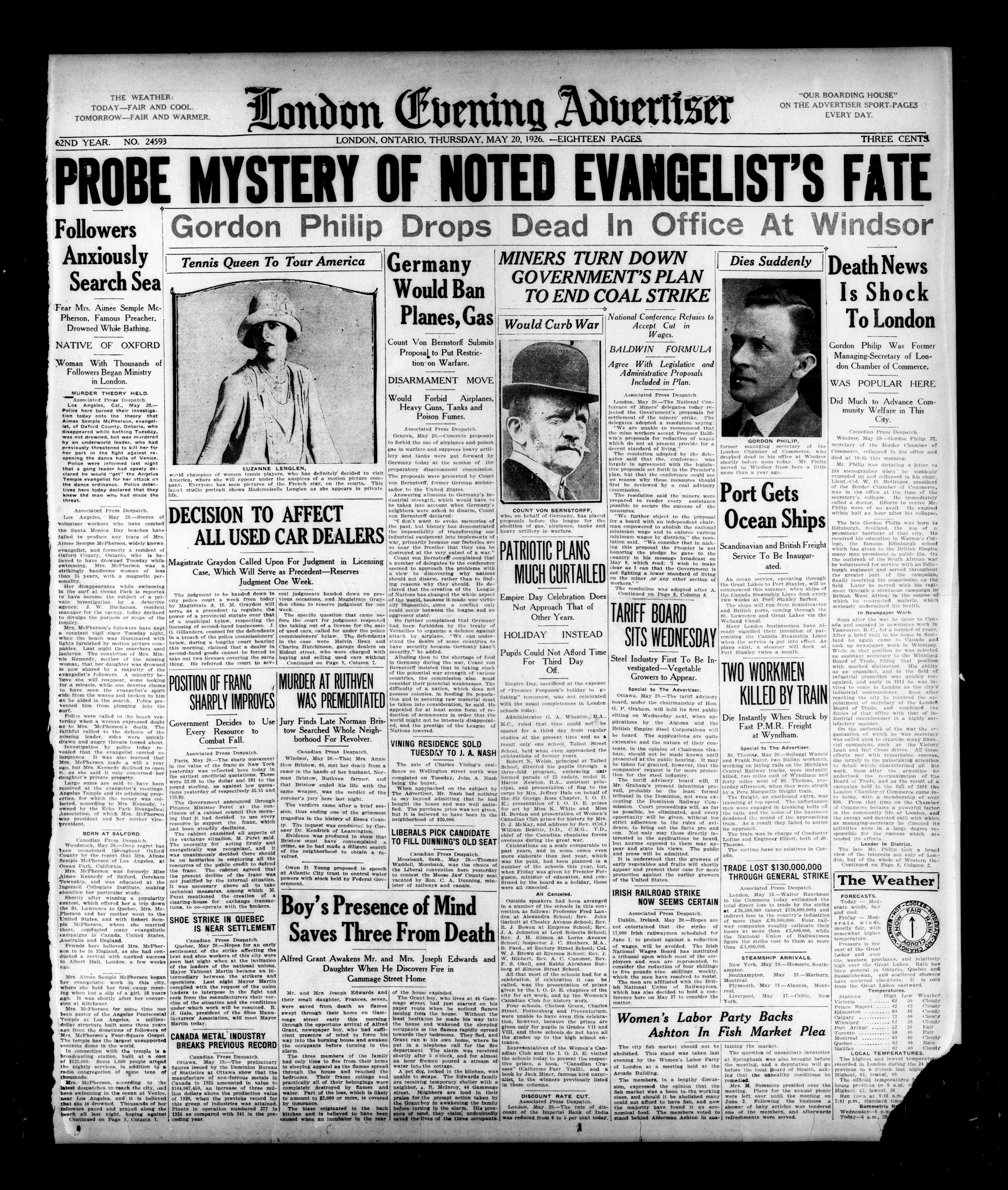 London, Ontario : London Advertiser Company, Limited, [1926]; 18 images, 0 with full-text search