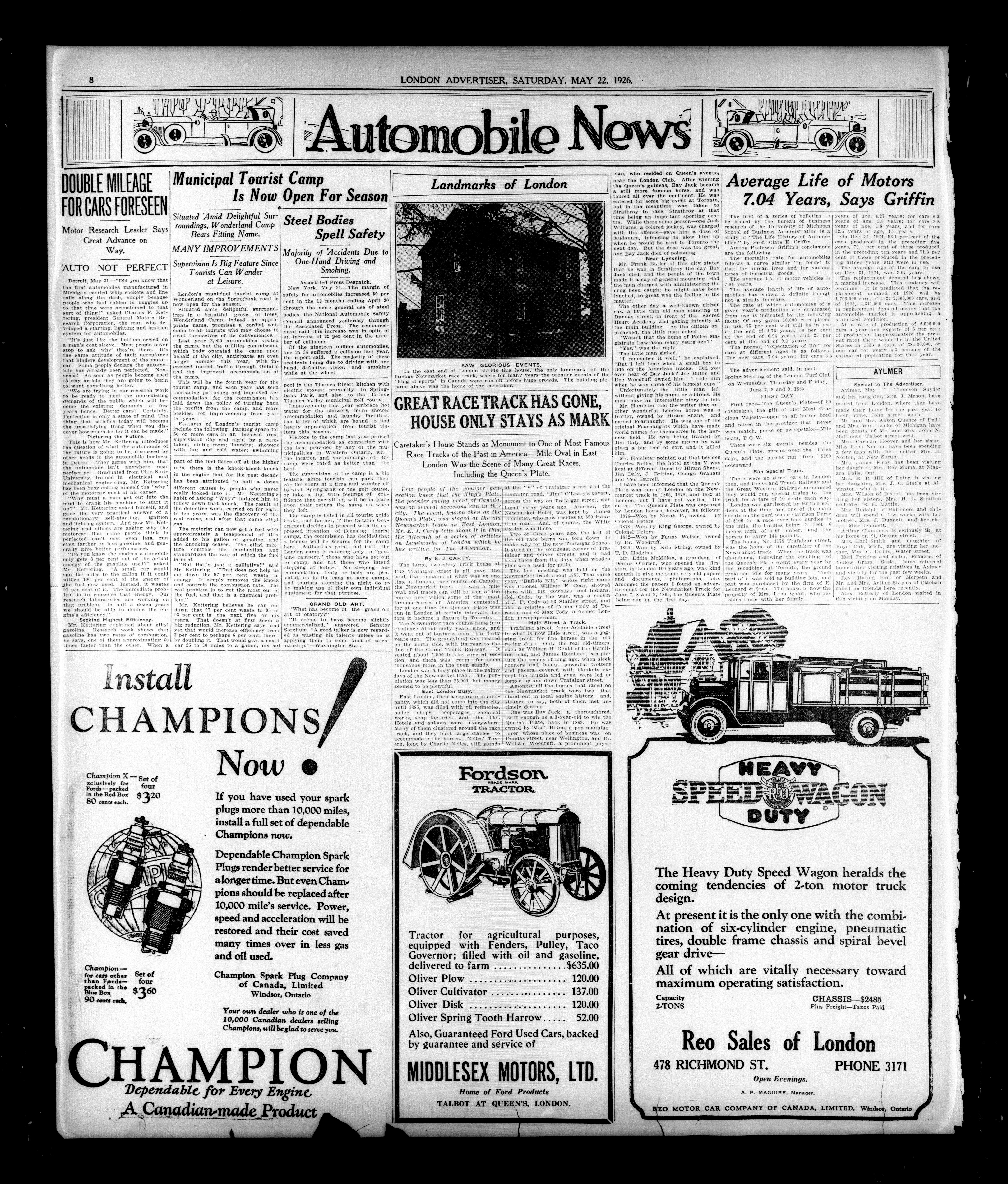 London, Ontario : London Advertiser Company, Limited, [1926]; 24 images, 0 avec recherche en texte intégral