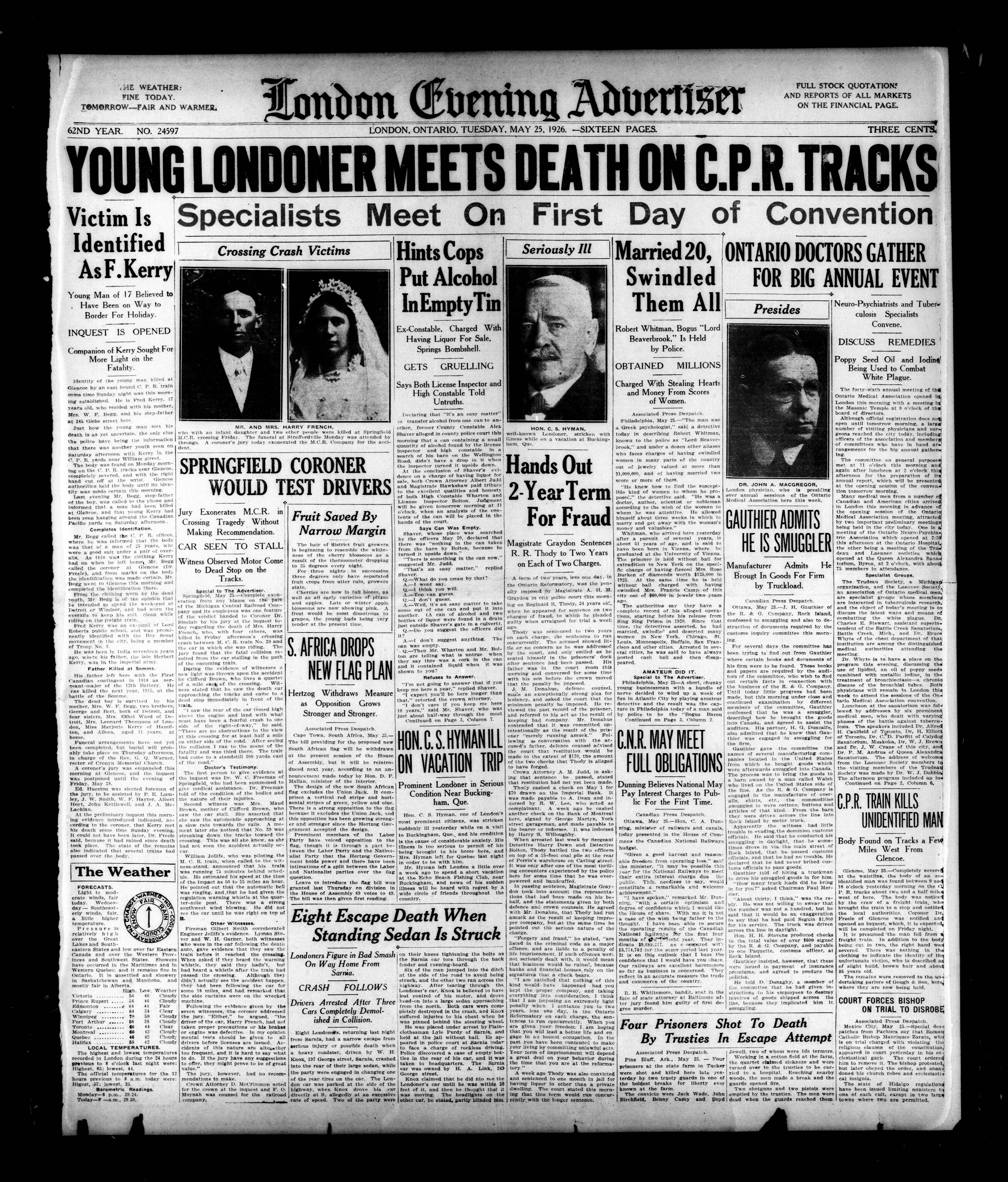 London, Ontario : London Advertiser Company, Limited, [1926]; 16 images, 0 avec recherche en texte intégral