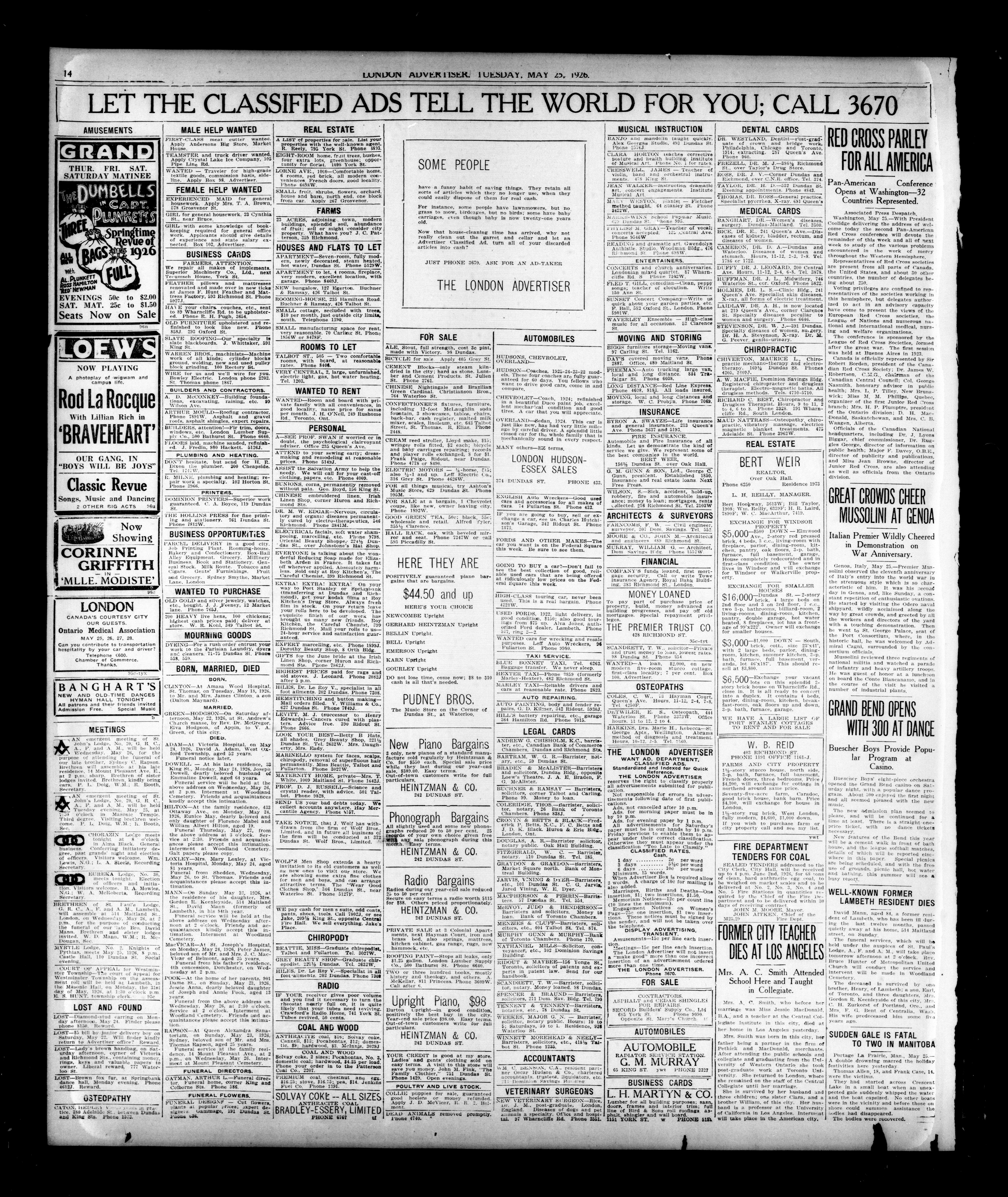 London, Ontario : London Advertiser Company, Limited, [1926]; 16 images, 0 avec recherche en texte intégral