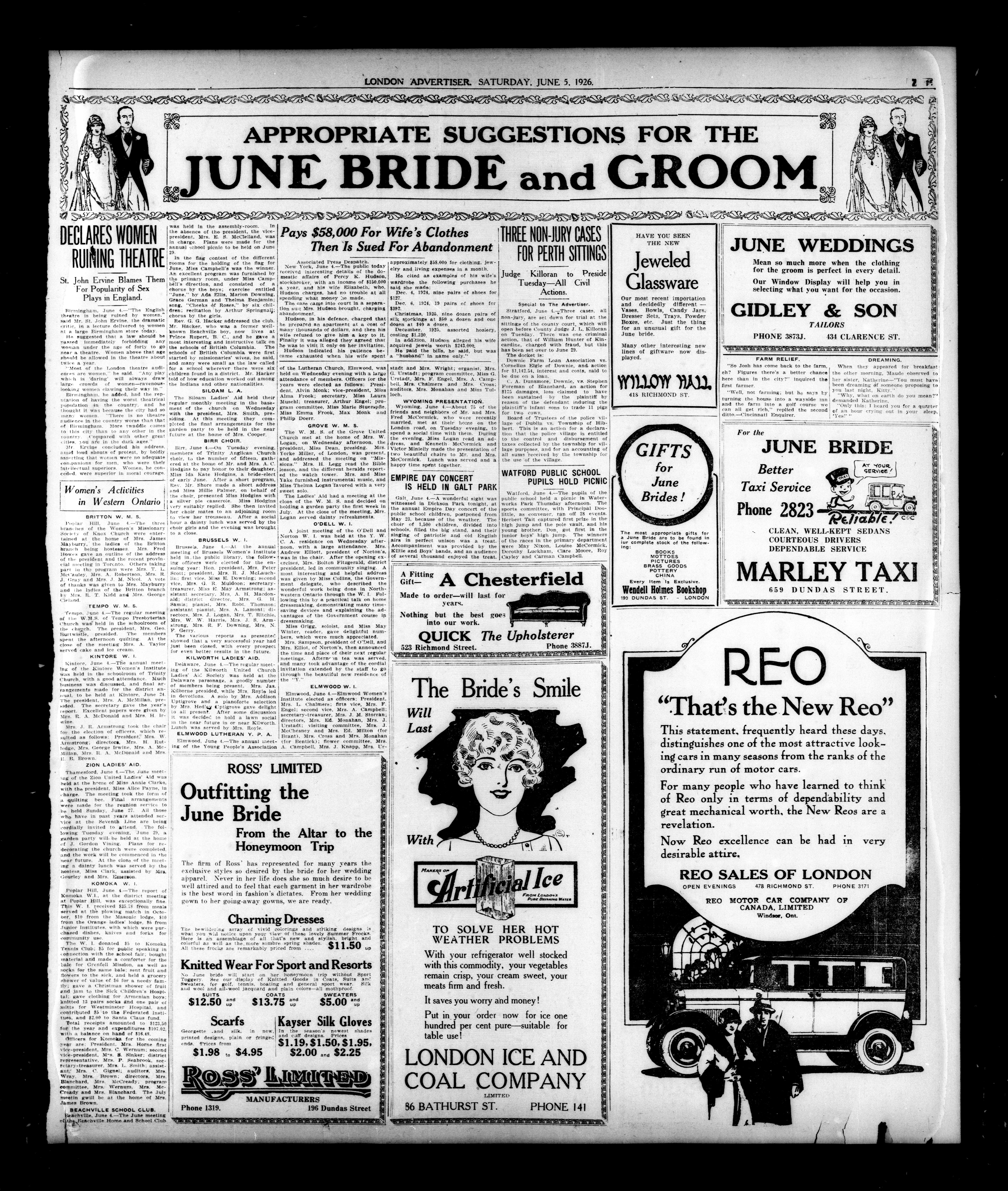 London, Ontario : London Advertiser Company, Limited, [1926]; 22 images, 0 avec recherche en texte intégral