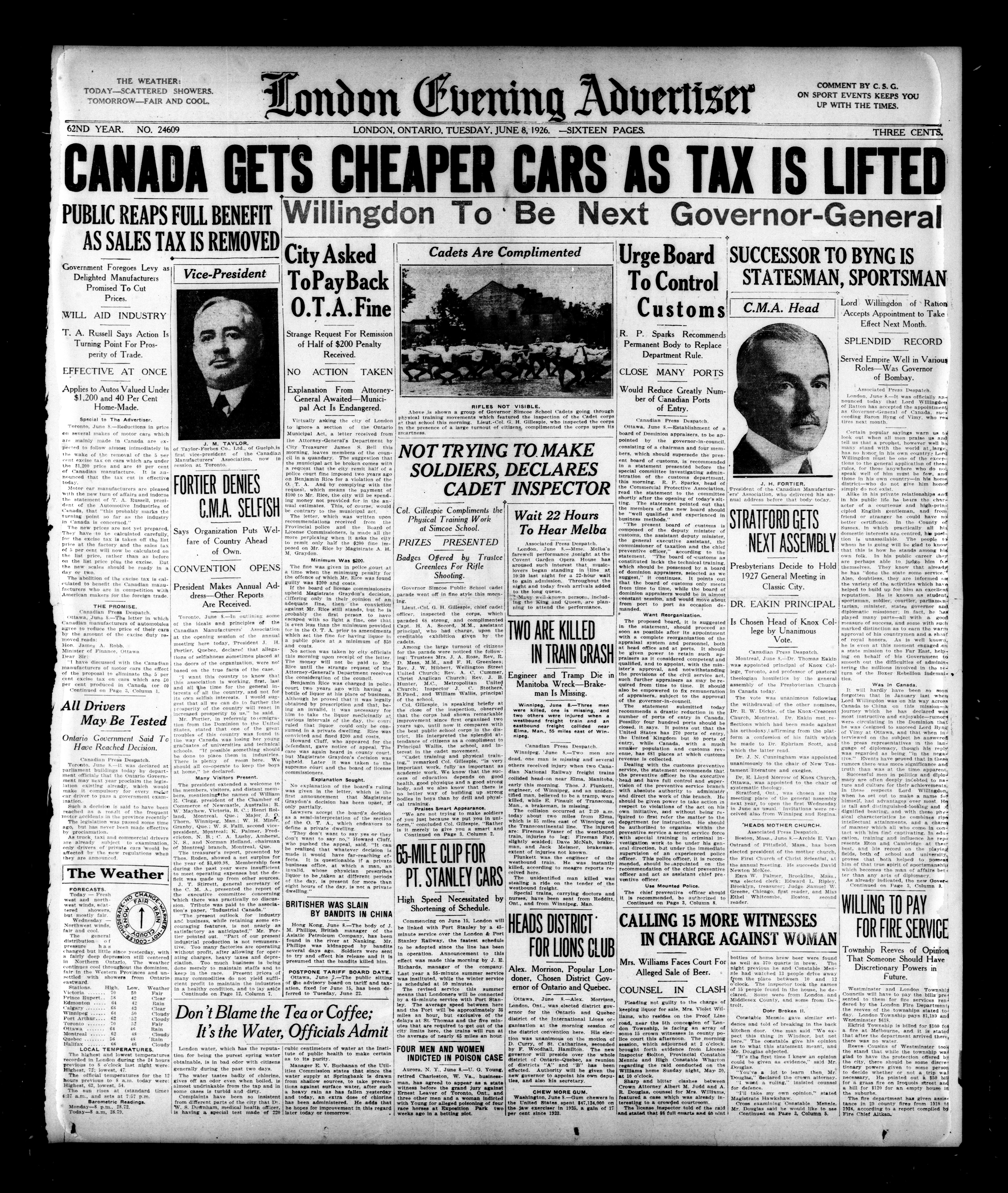 London, Ontario : London Advertiser Company, Limited, [1926]; 16 images, 0 avec recherche en texte intégral