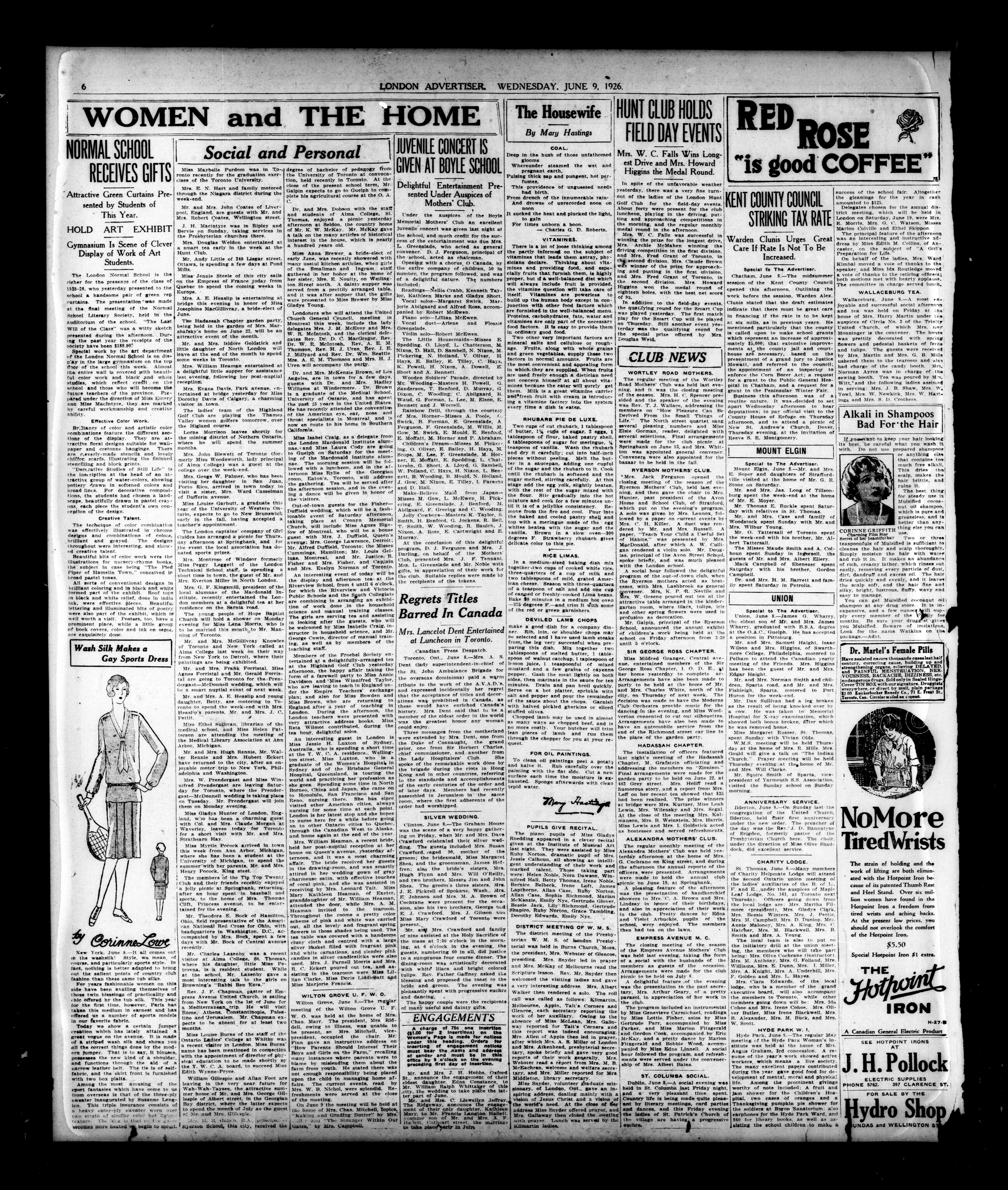 London, Ontario : London Advertiser Company, Limited, [1926]; 16 images, 0 avec recherche en texte intégral
