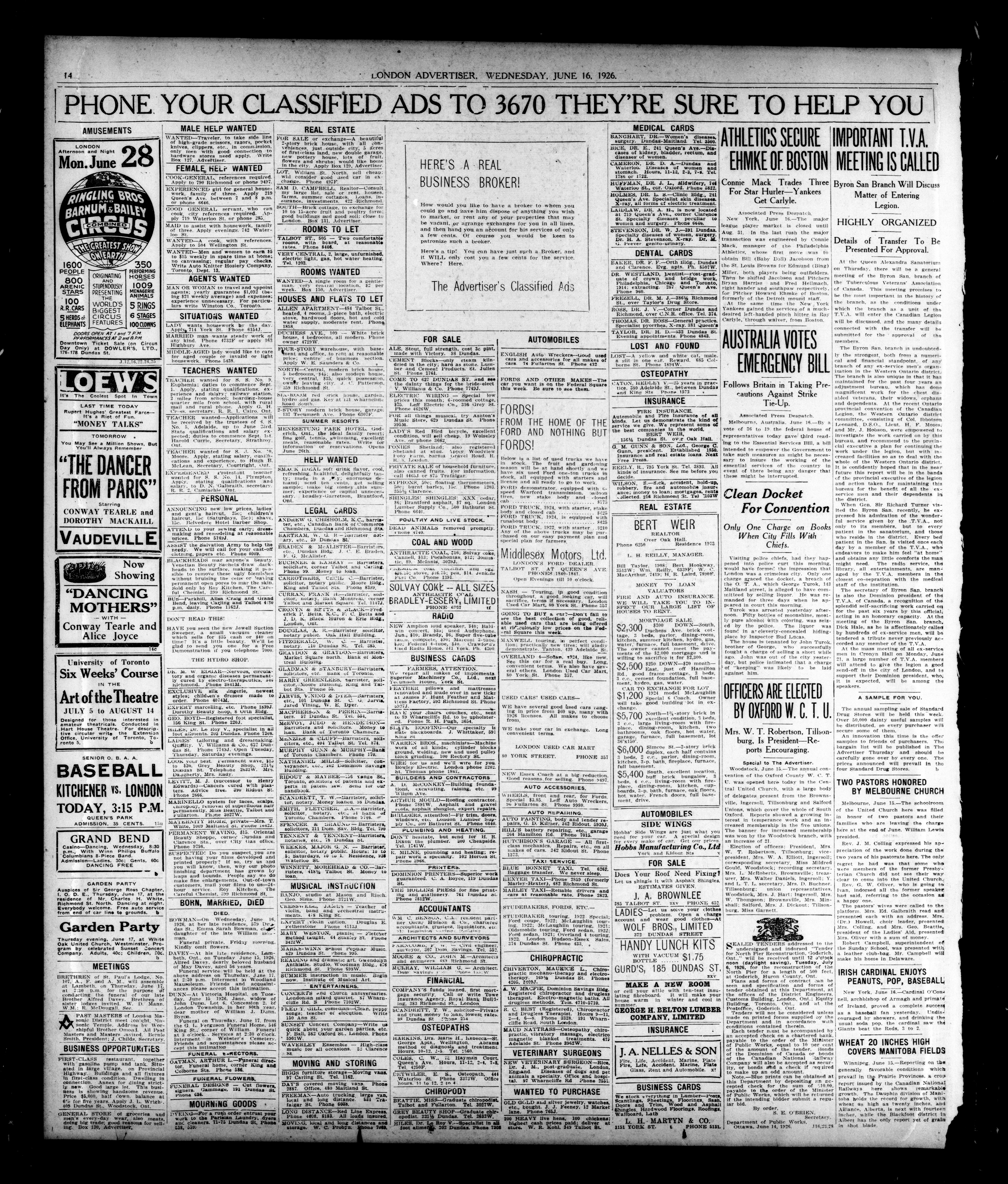 London, Ontario : London Advertiser Company, Limited, [1926]; 16 images, 0 with full-text search