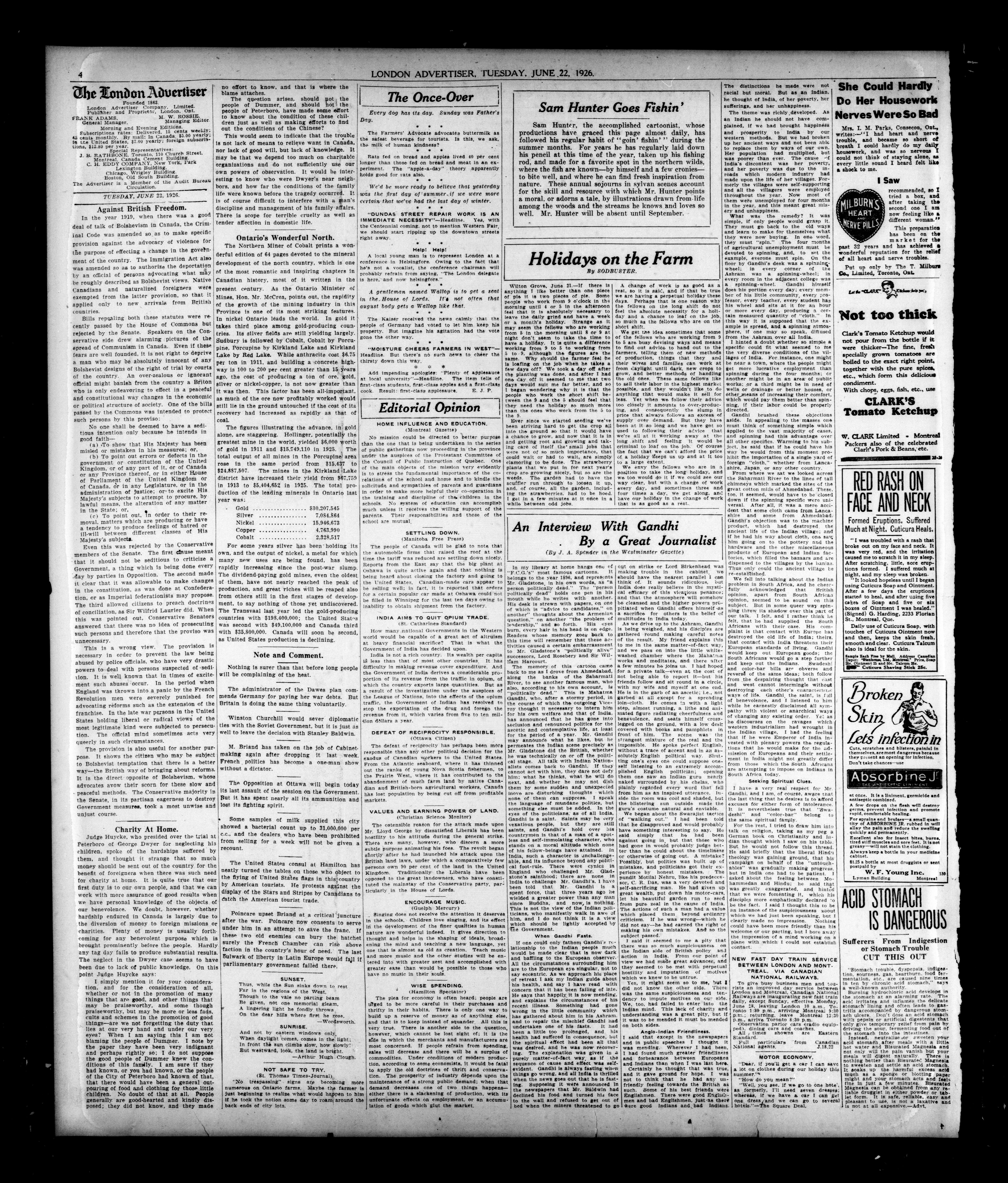 London, Ontario : London Advertiser Company, Limited, [1926]; 14 images, 0 avec recherche en texte intégral