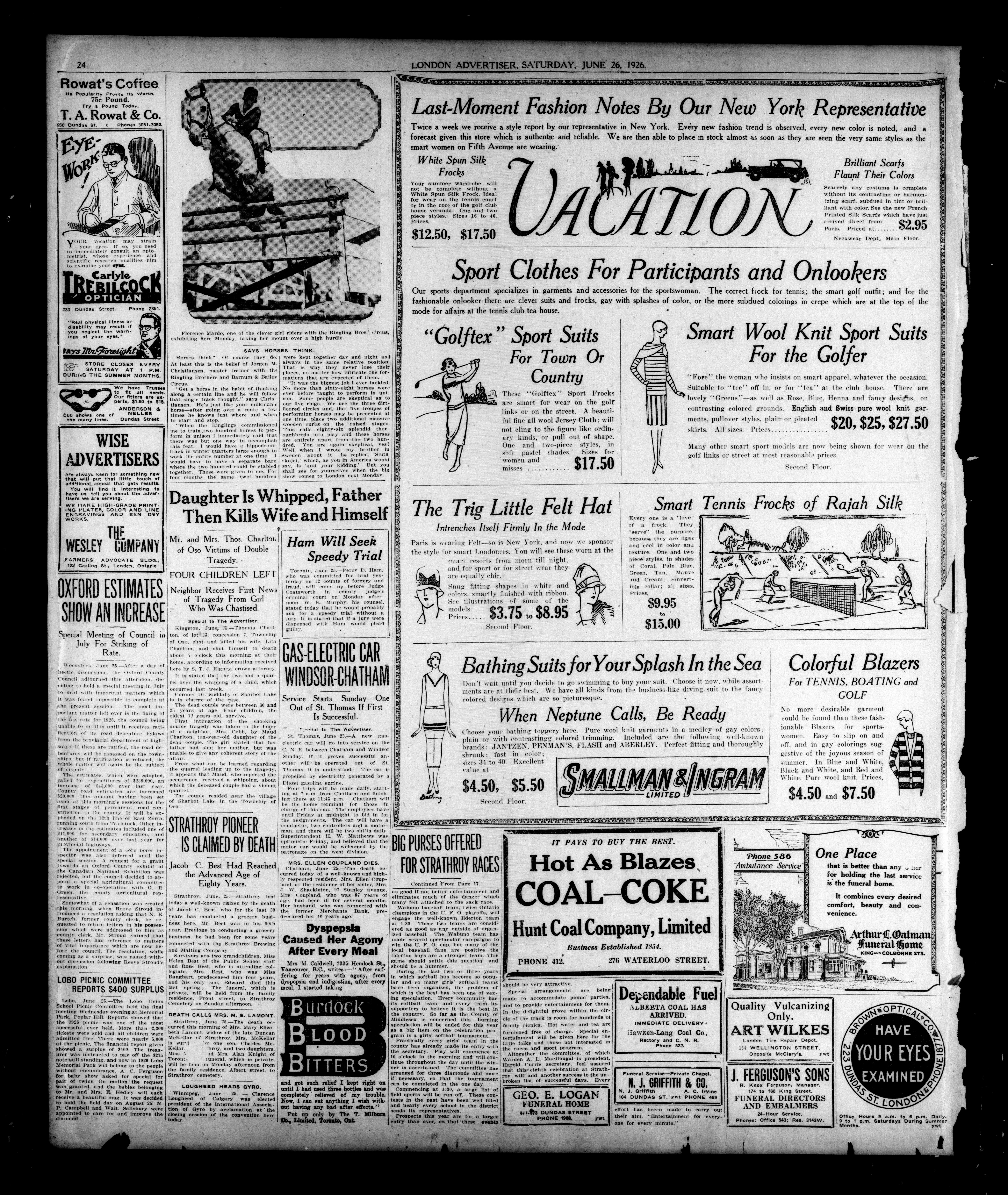 London Evening Advertiser. : London evening advertiser : 62nd Year, No. 24625 (June 26, 1926)