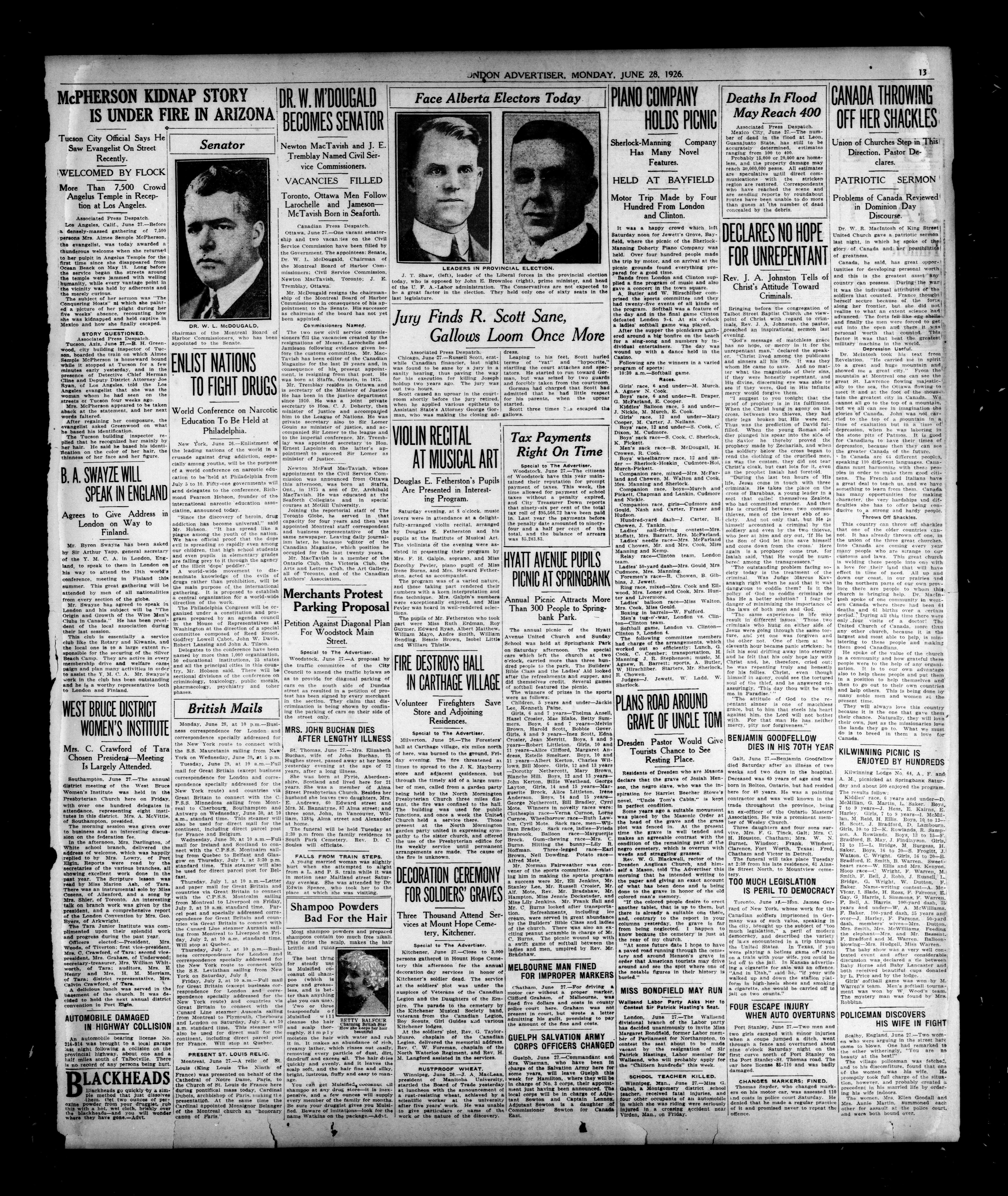 London, Ontario : London Advertiser Company, Limited, [1926]; 14 images, 0 avec recherche en texte intégral