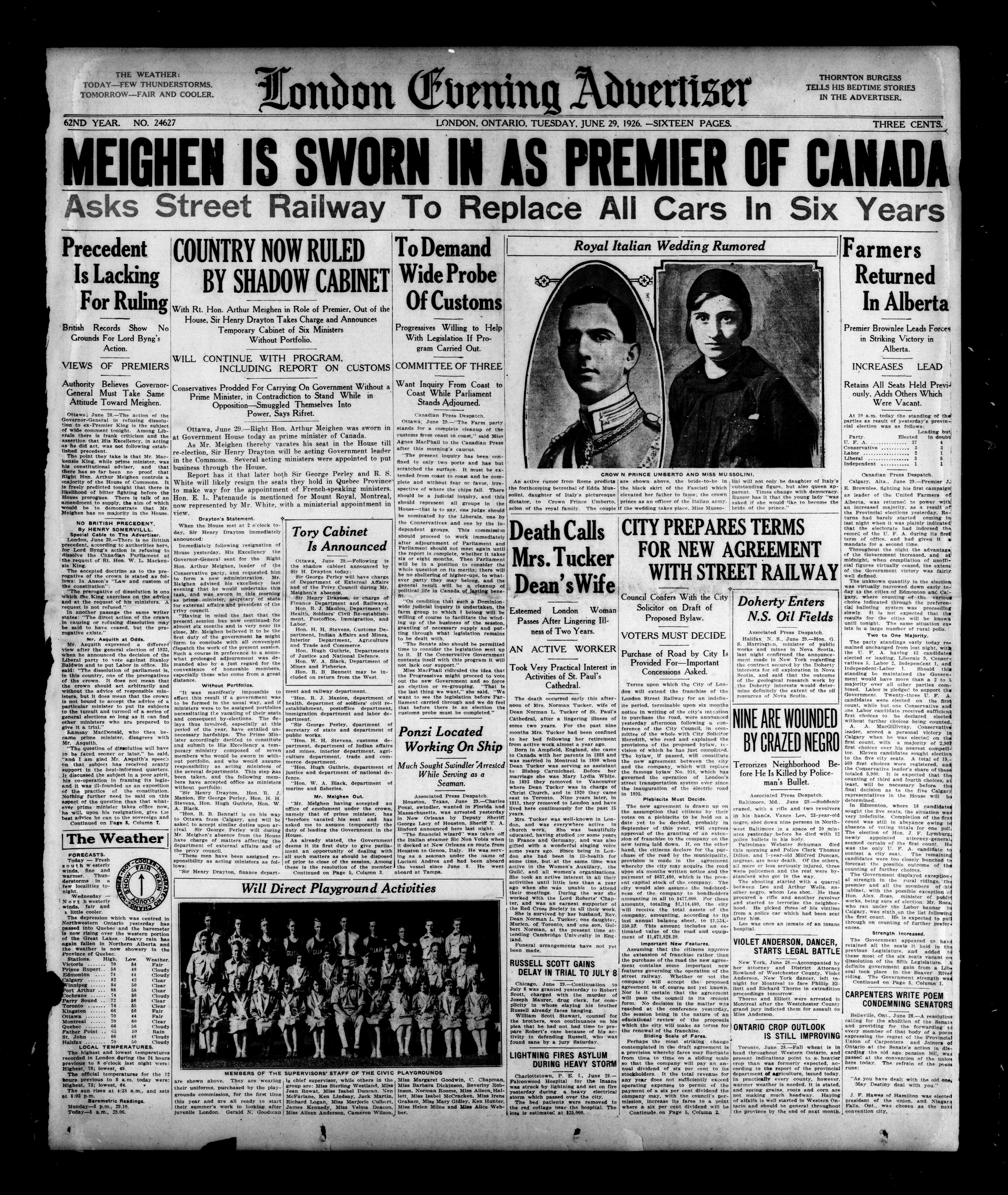 London, Ontario : London Advertiser Company, Limited, [1926]; 16 images, 0 avec recherche en texte intégral