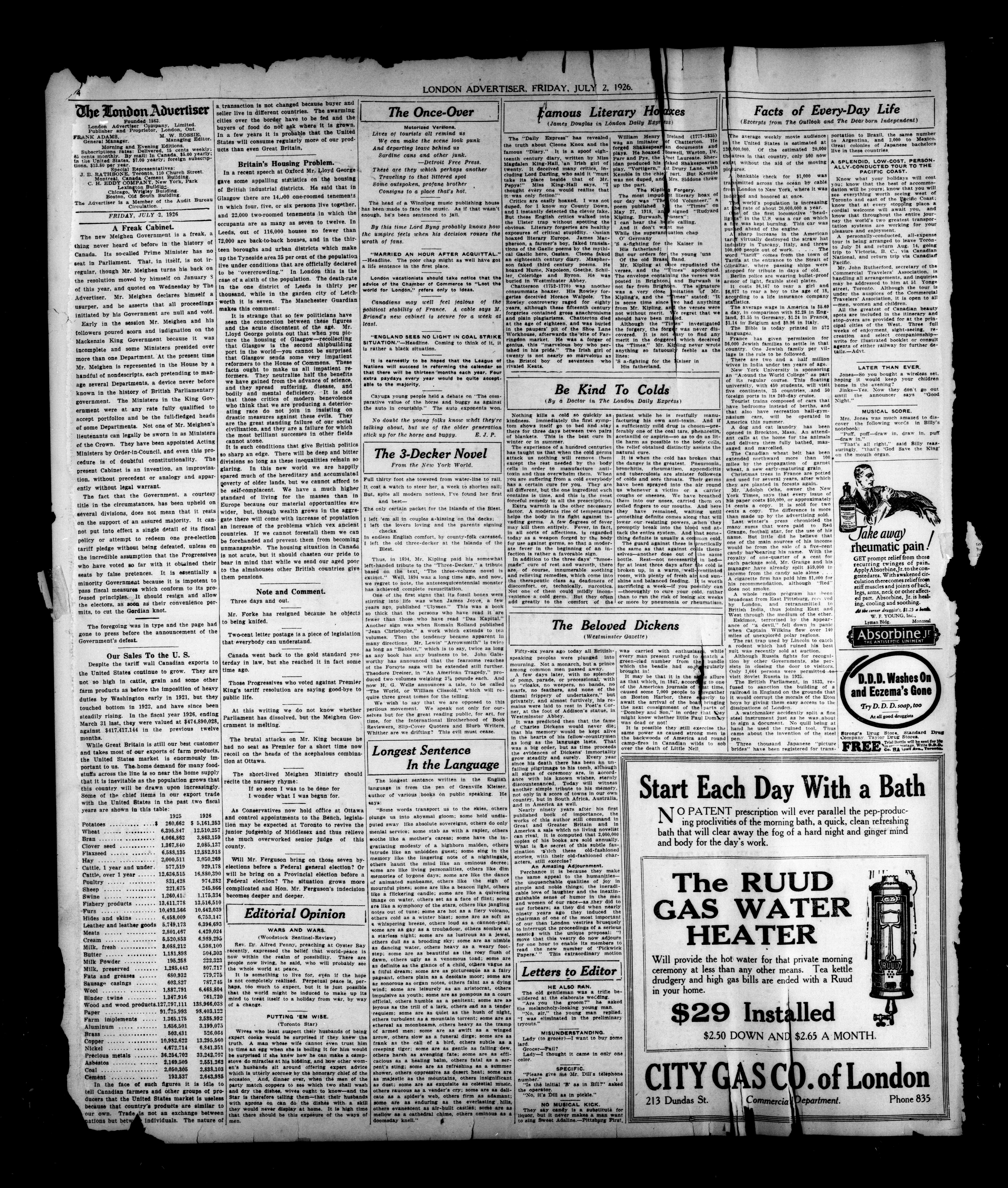 London evening advertiser : 62nd Year, No. 24630 (July 2, 1926)
