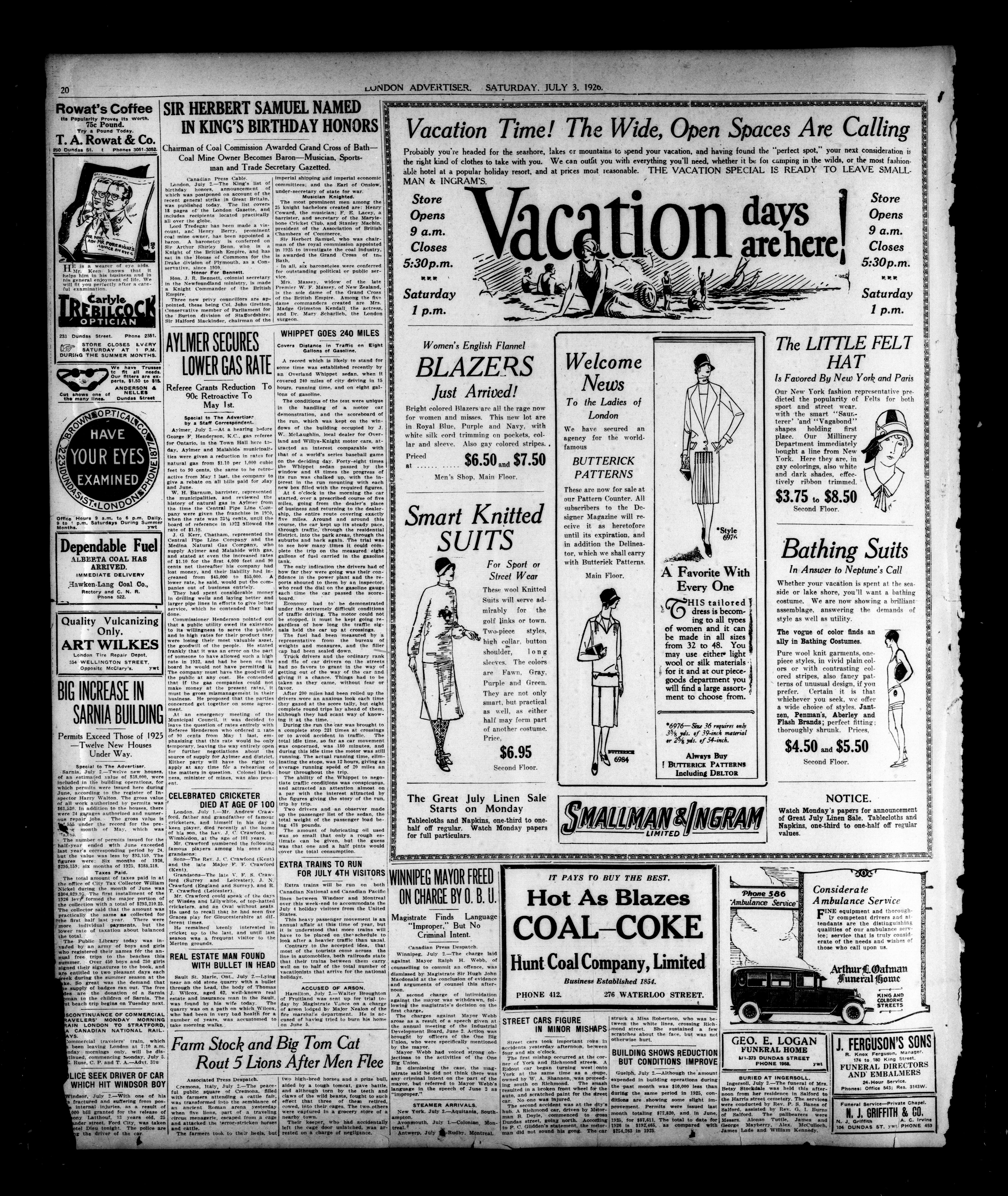 London, Ontario : London Advertiser Company, Limited, [1926]; 20 images, 0 avec recherche en texte intégral
