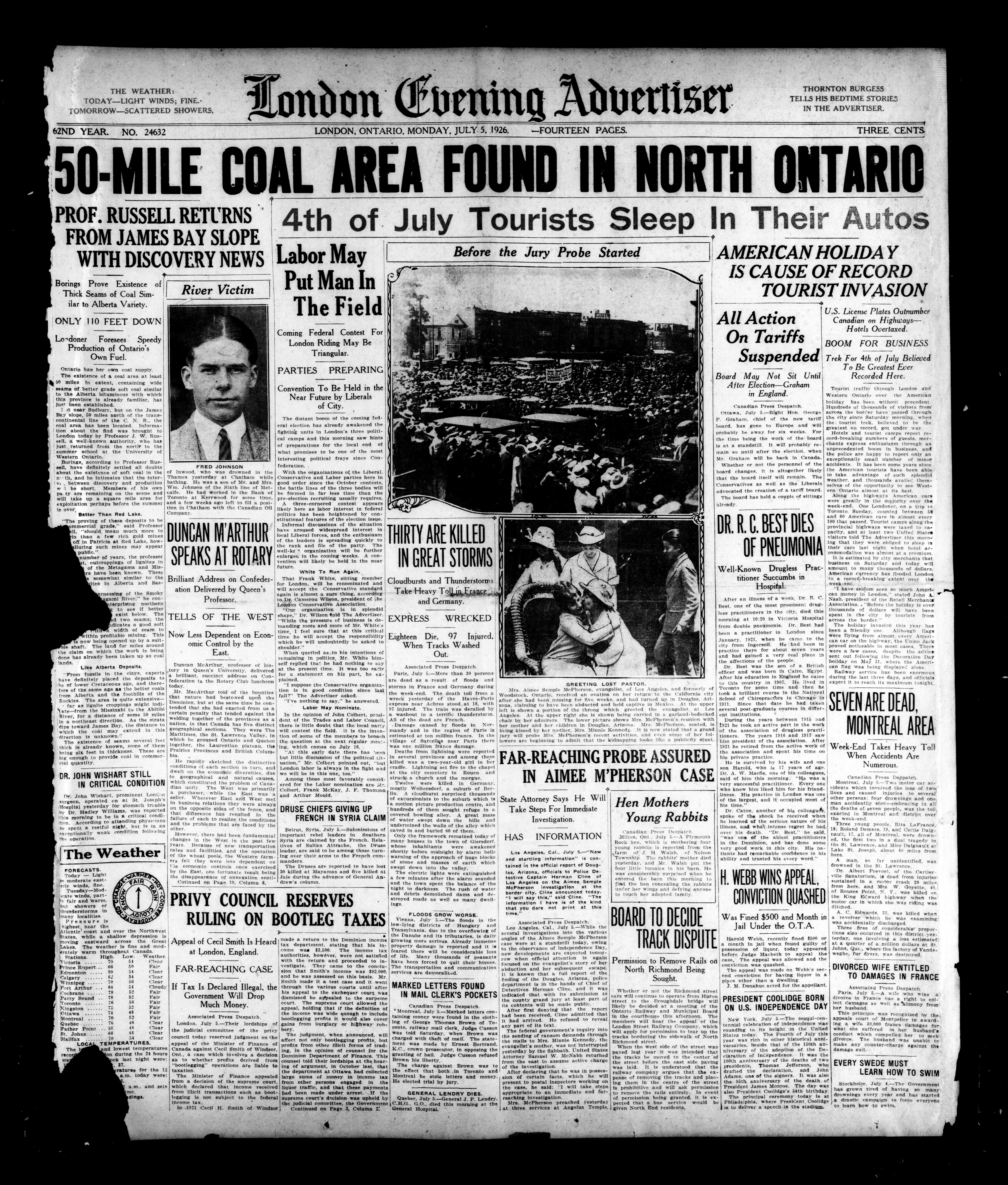 London, Ontario : London Advertiser Company, Limited, [1926]; 14 images, 0 avec recherche en texte intégral