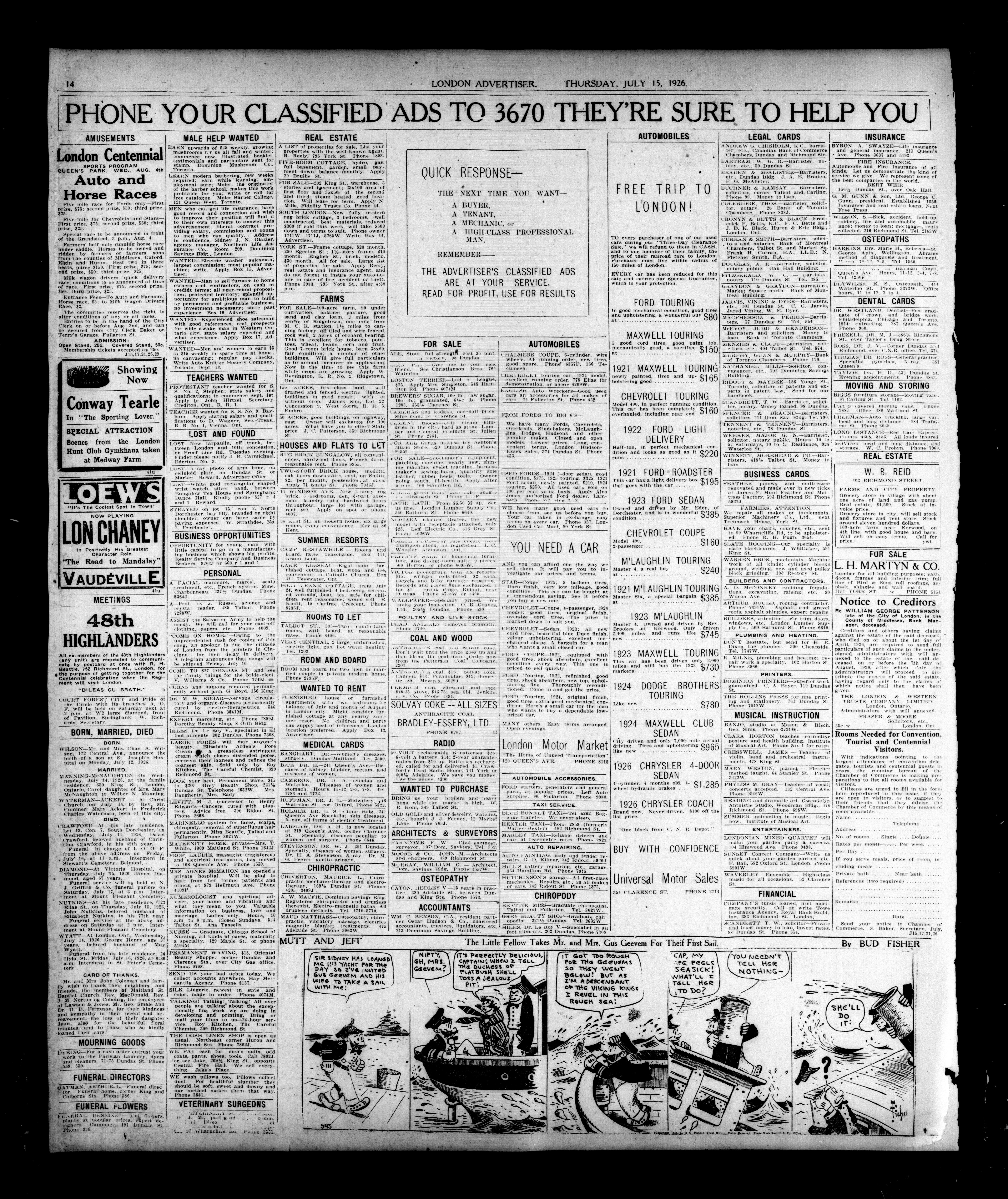 London, Ontario : London Advertiser Company, Limited, [1926]; 16 images, 0 avec recherche en texte intégral