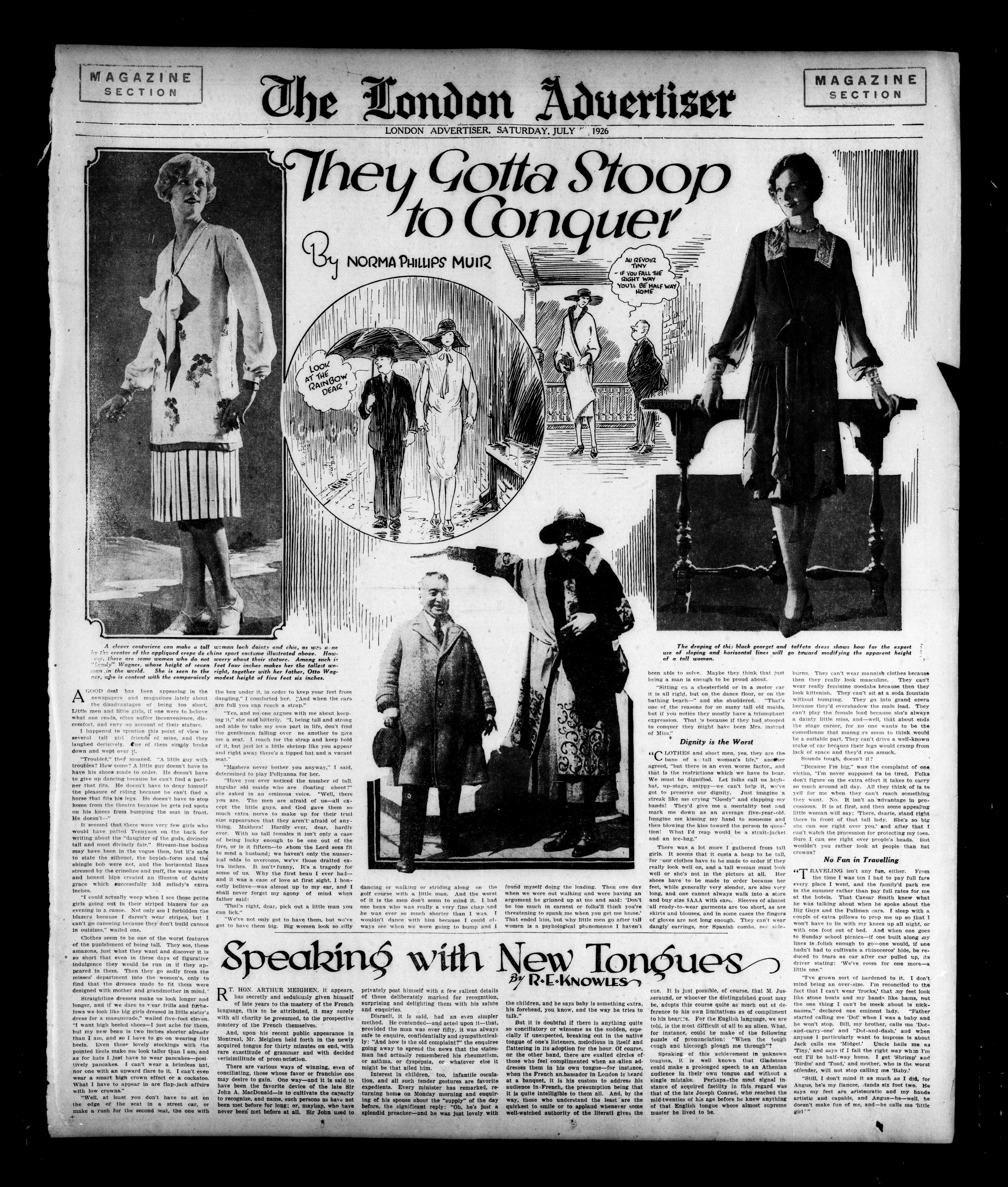 Aide London, Ontario : London Advertiser Company, Limited, [1926]; 20 images, 0 avec recherche en texte intégral