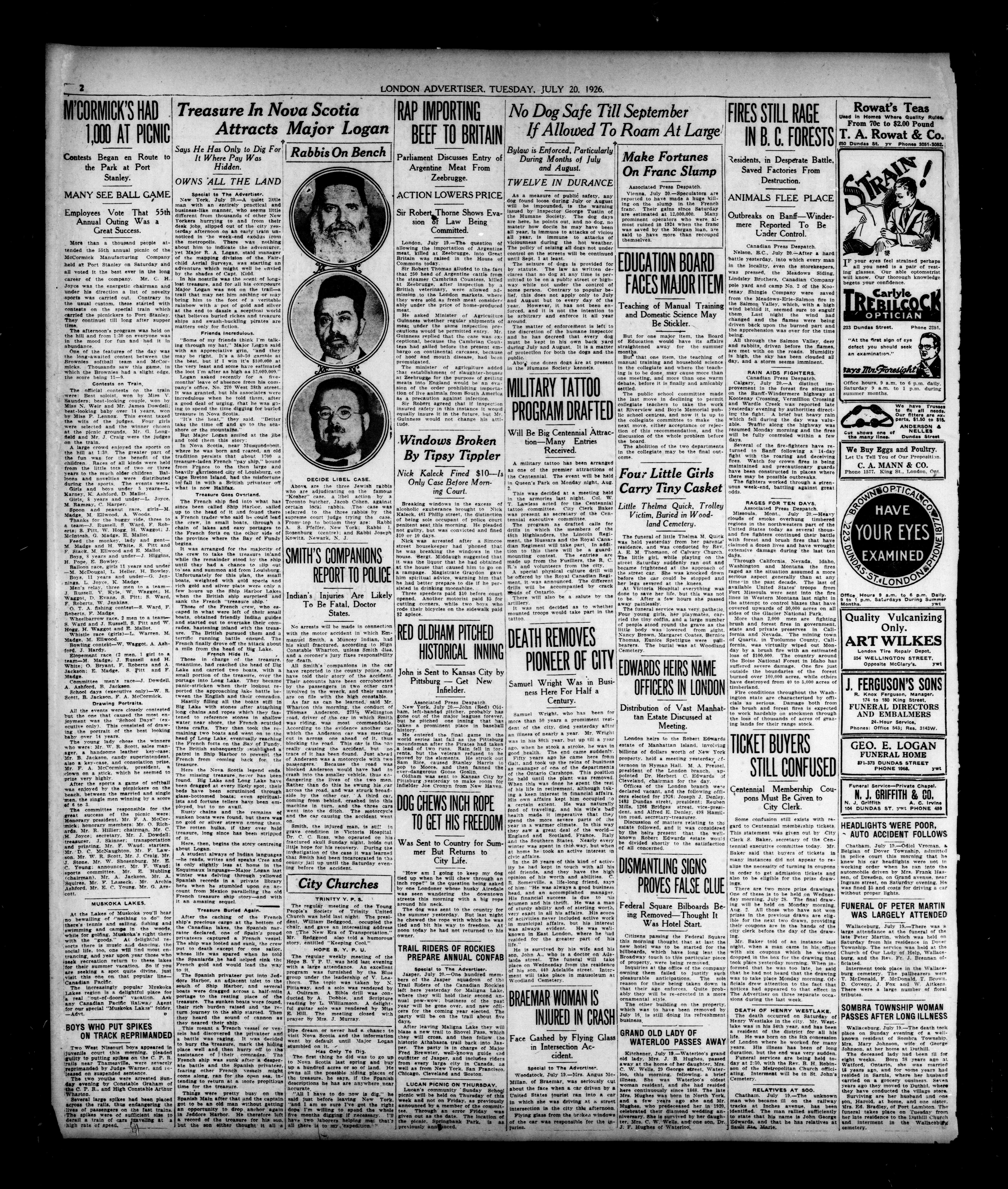 London, Ontario : London Advertiser Company, Limited, [1926]; 16 images, 0 avec recherche en texte intégral