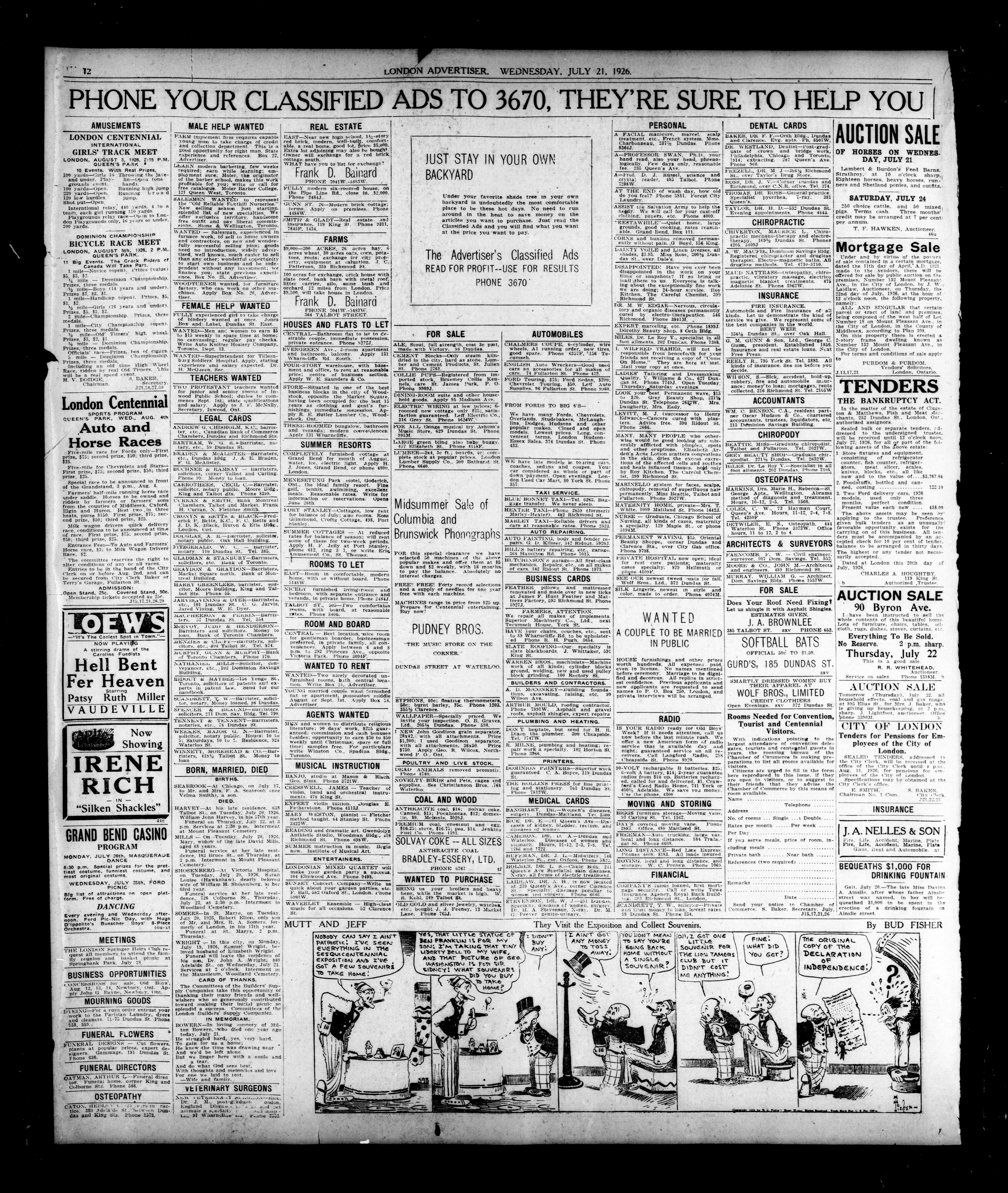 London, Ontario : London Advertiser Company, Limited, [1926]; 14 images, 0 avec recherche en texte intégral