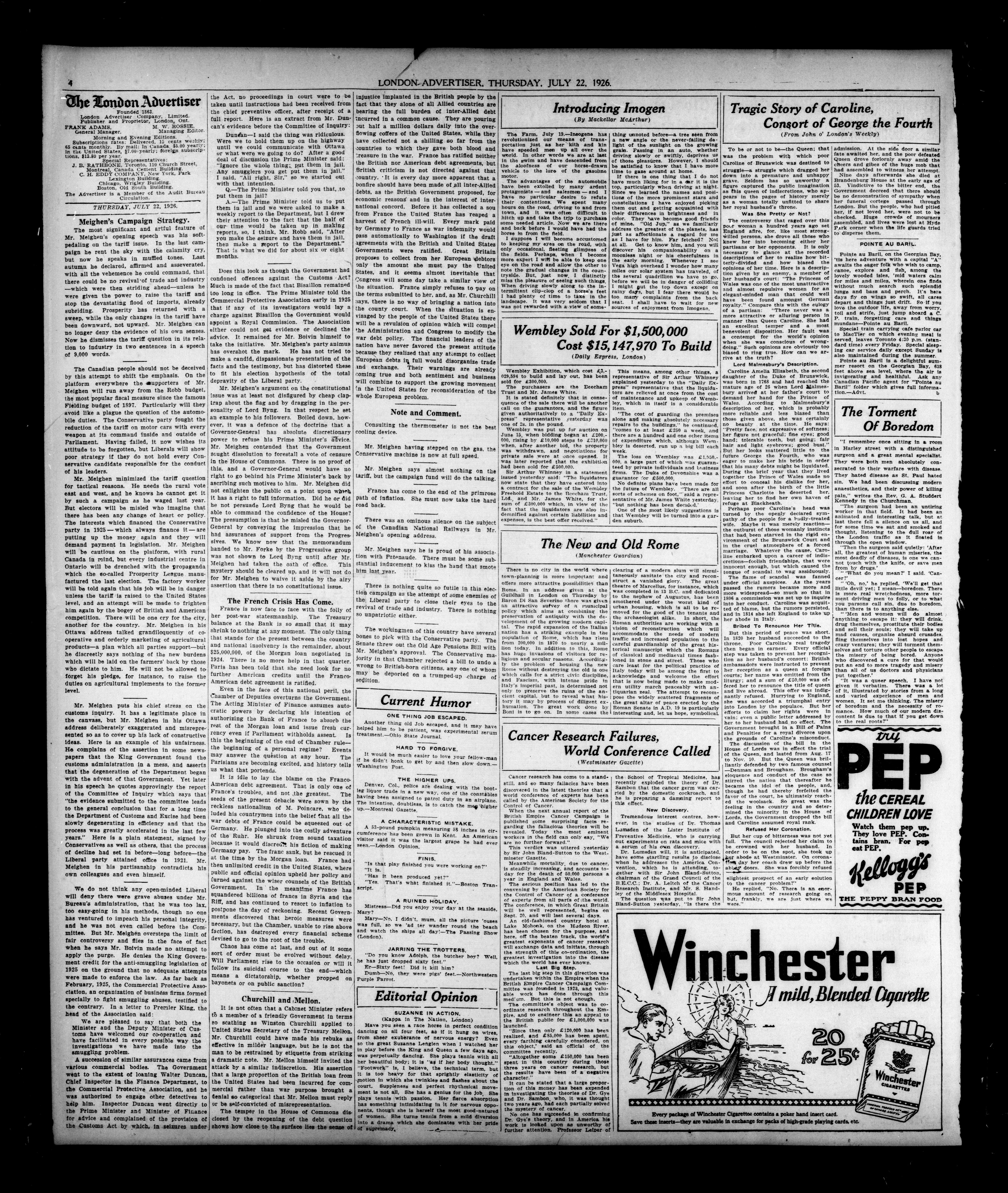 London, Ontario : London Advertiser Company, Limited, [1926]; 14 images, 0 avec recherche en texte intégral