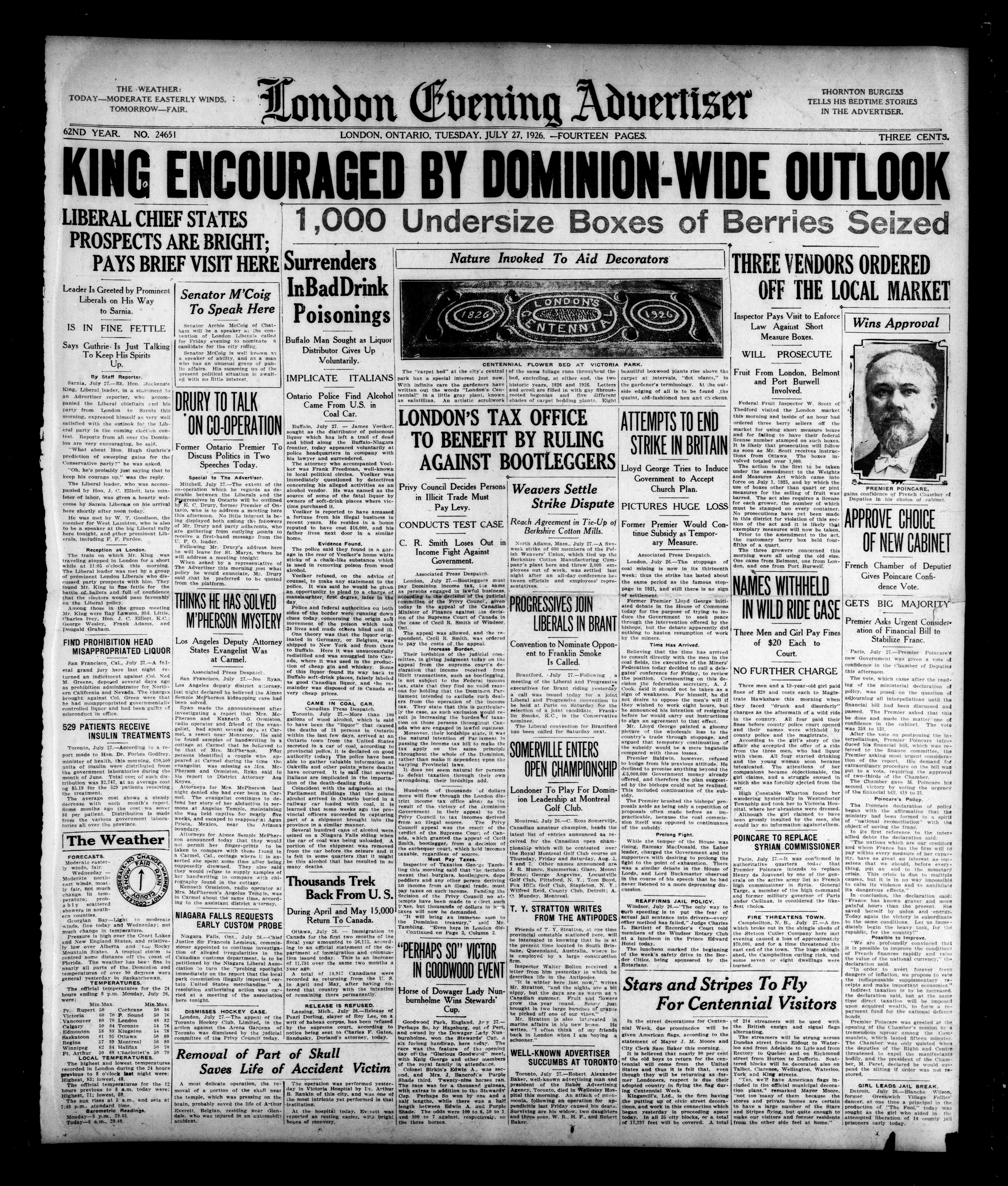 London, Ontario : London Advertiser Company, Limited, [1926]; 14 images, 0 avec recherche en texte intégral