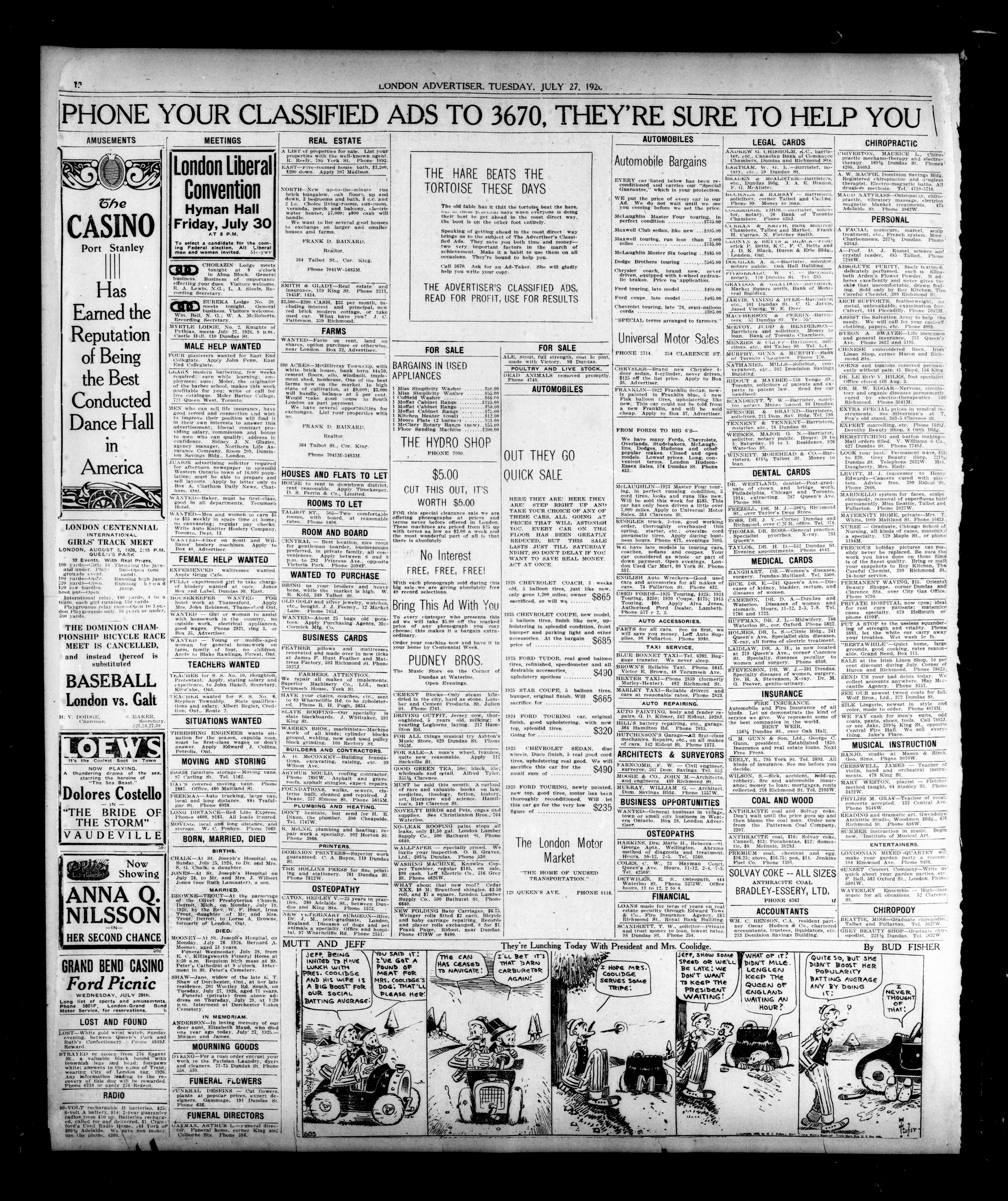London, Ontario : London Advertiser Company, Limited, [1926]; 14 images, 0 avec recherche en texte intégral
