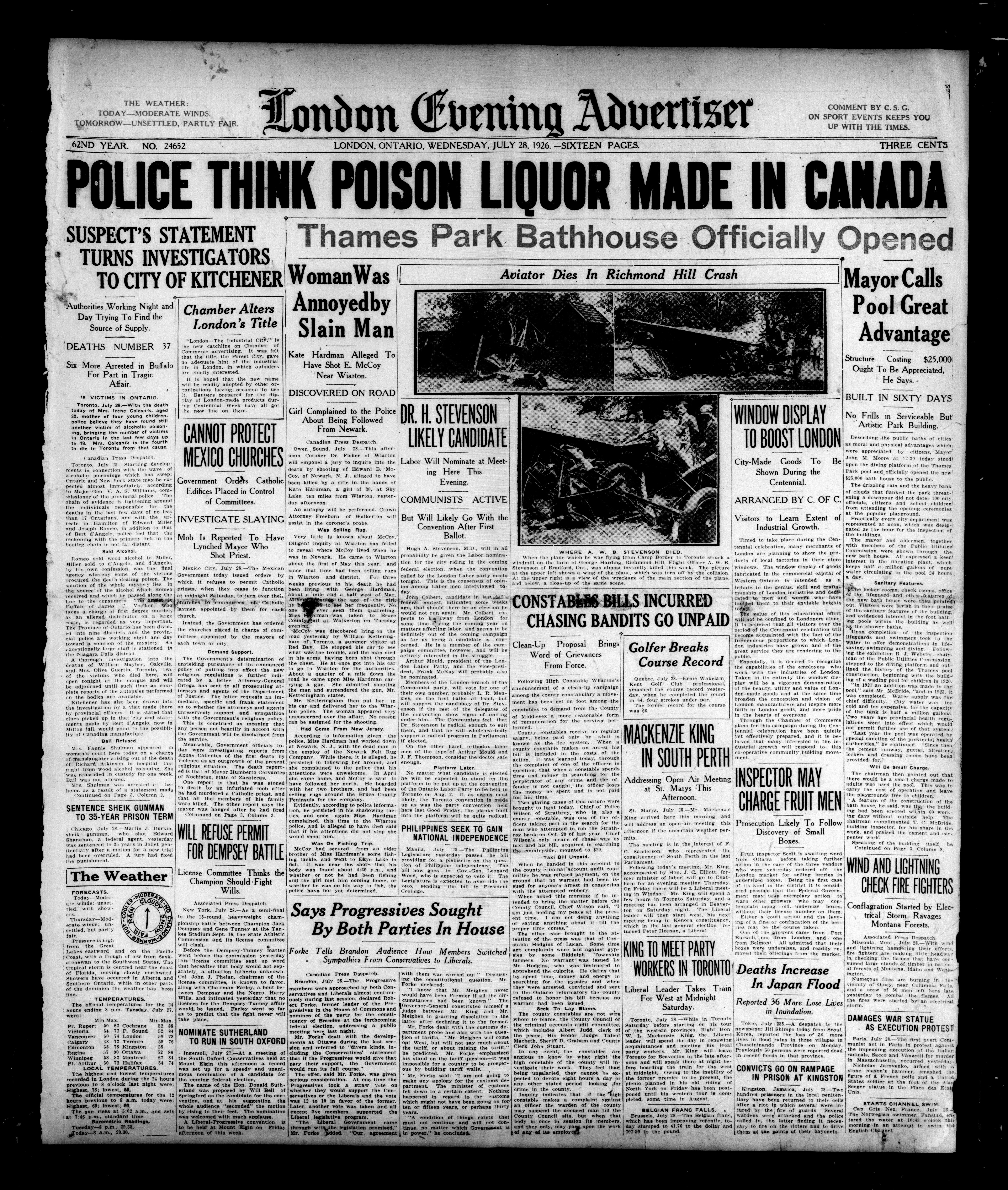 London, Ontario : London Advertiser Company, Limited, [1926]; 16 images, 0 avec recherche en texte intégral