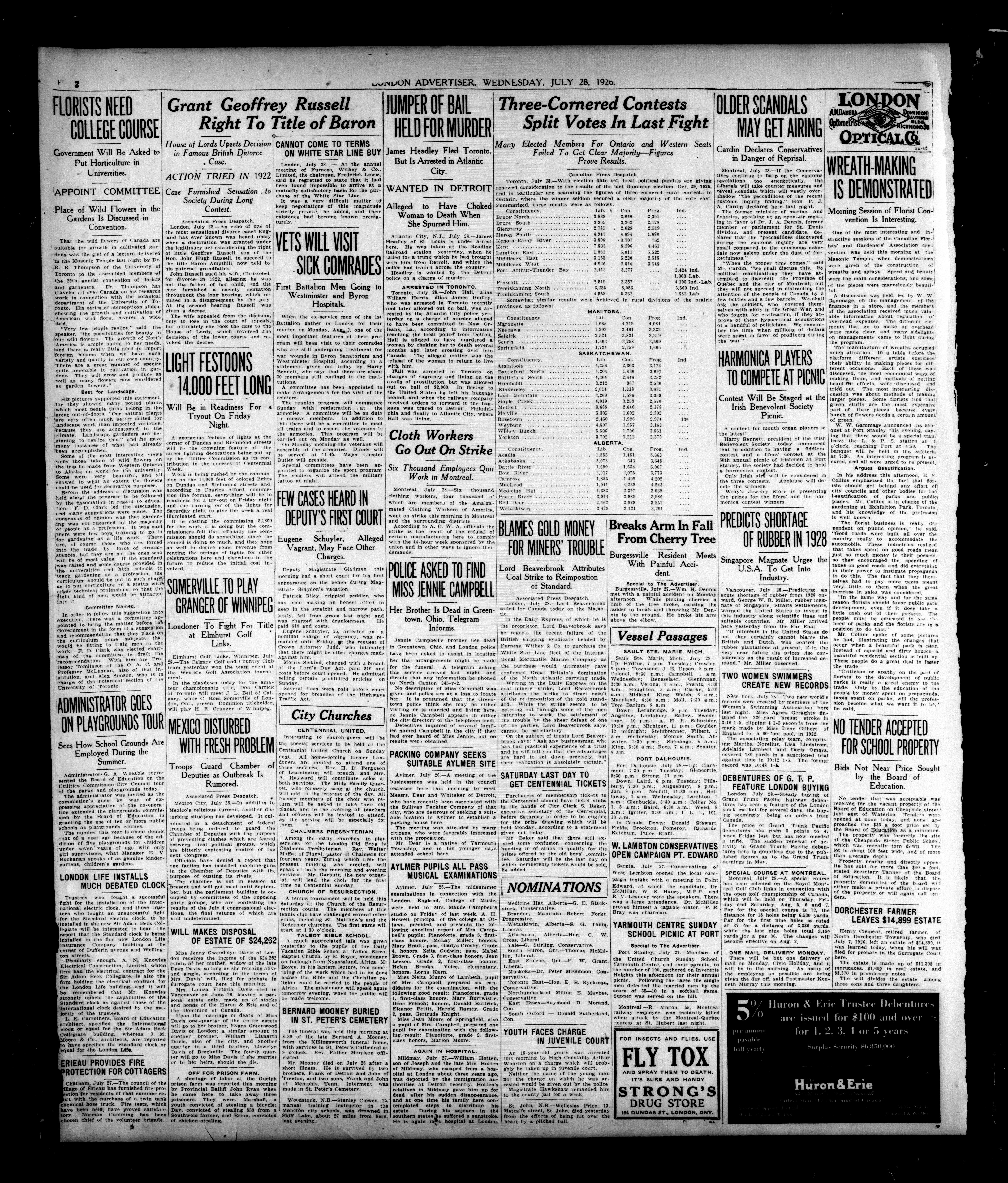 London, Ontario : London Advertiser Company, Limited, [1926]; 16 images, 0 avec recherche en texte intégral