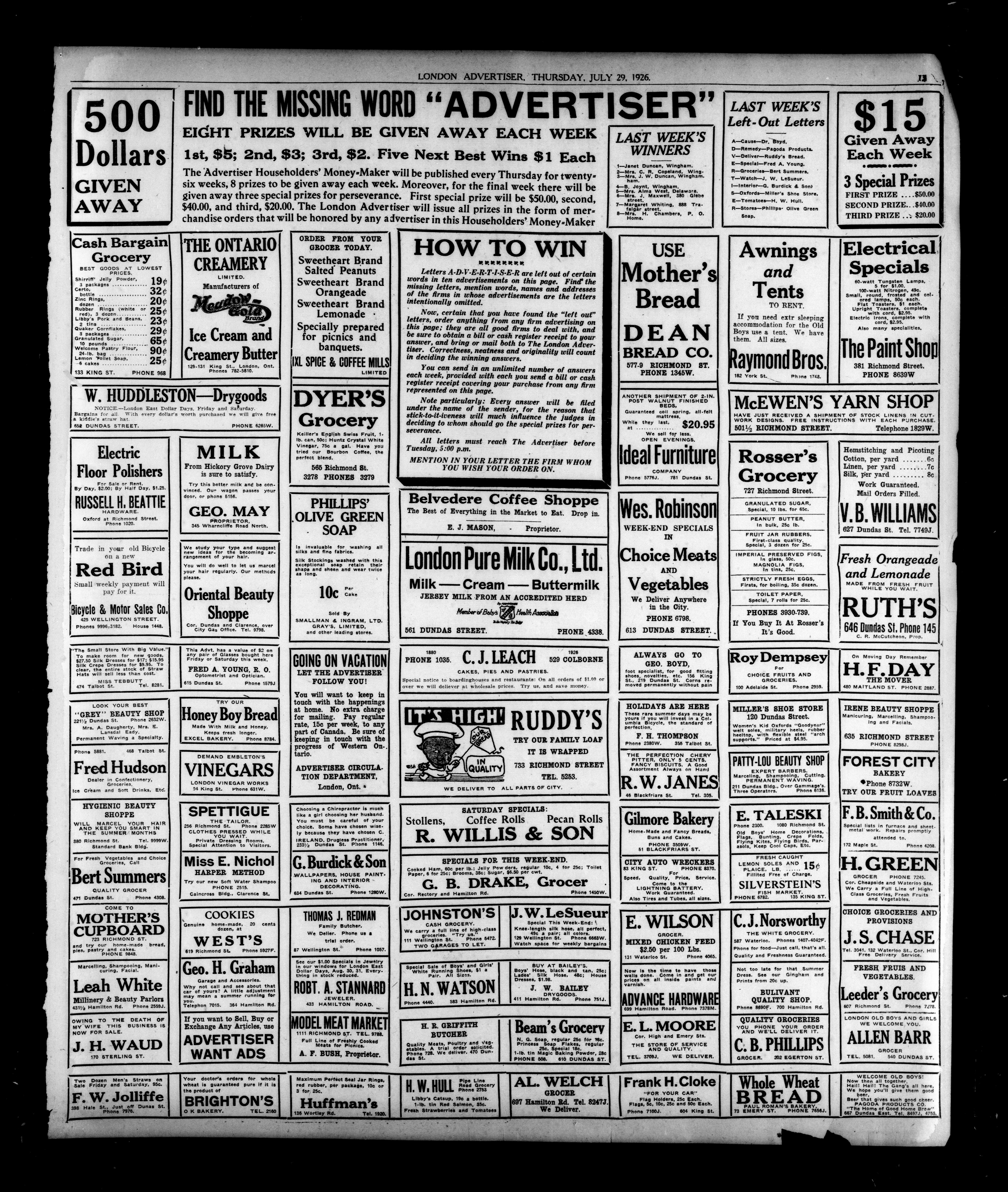Aide London, Ontario : London Advertiser Company, Limited, [1926]; 16 images, 0 avec recherche en texte intégral