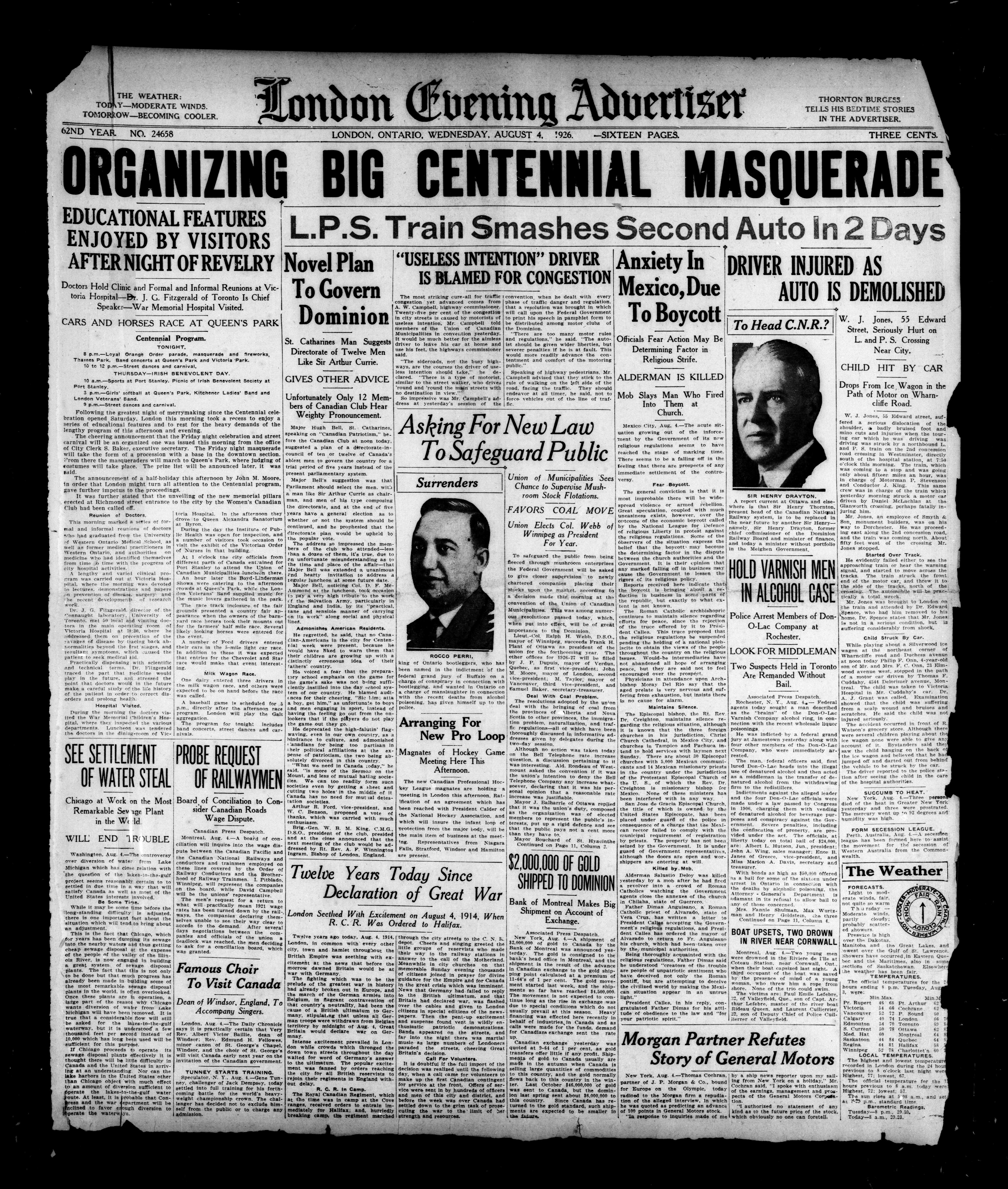London, Ontario : London Advertiser Company, Limited, [1926]; 16 images, 0 avec recherche en texte intégral