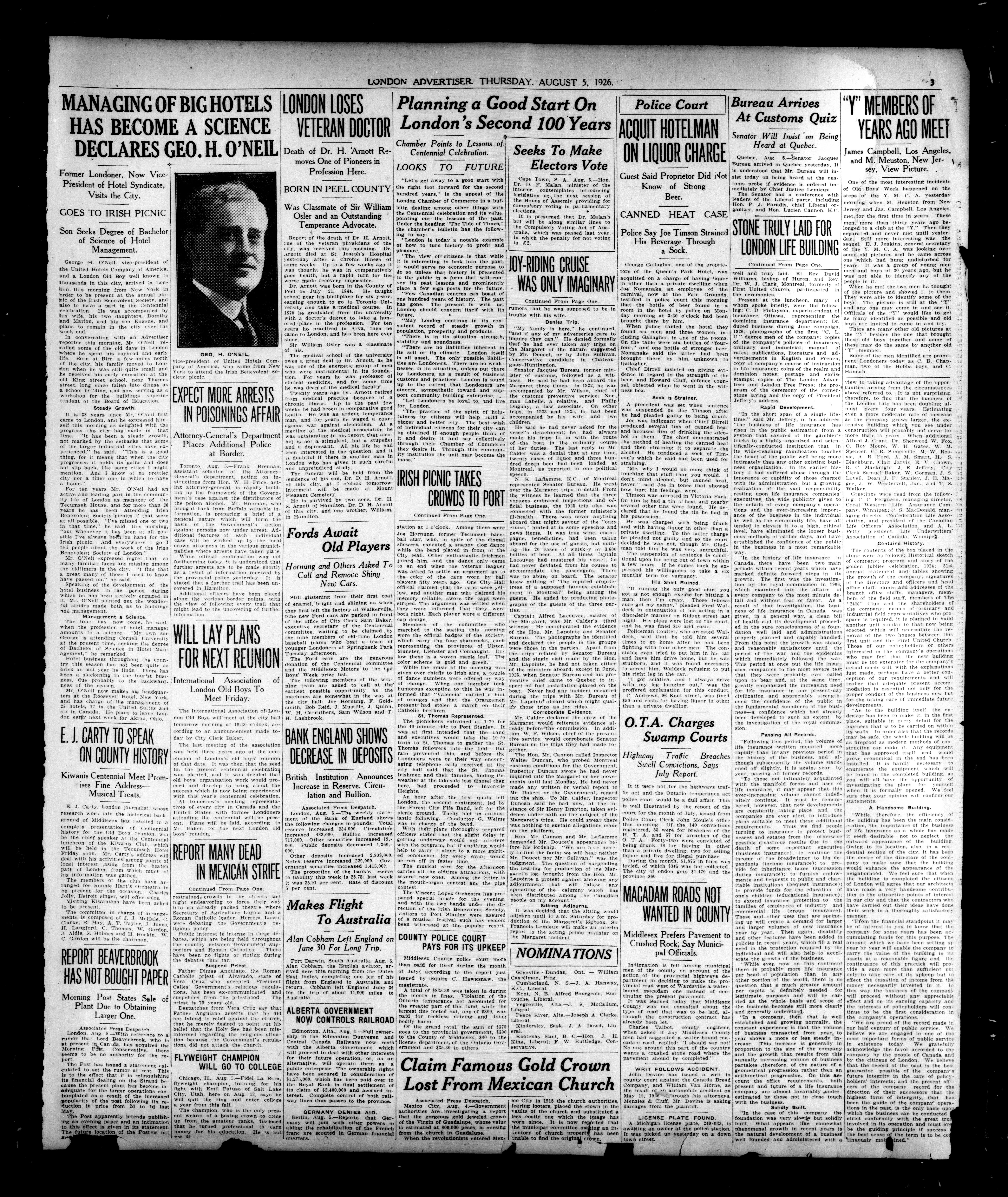 London, Ontario : London Advertiser Company, Limited, [1926]; 16 images, 0 avec recherche en texte intégral
