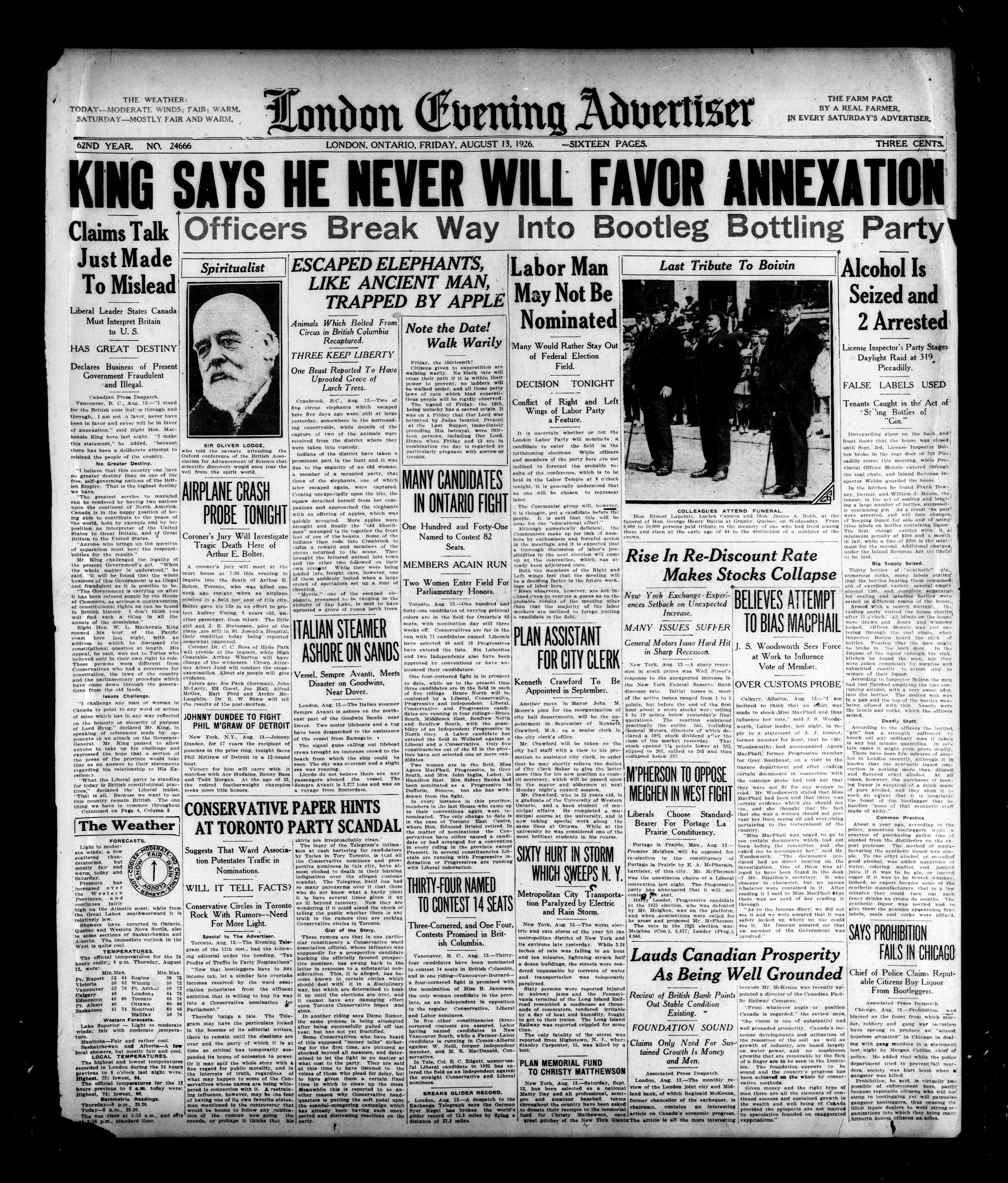 London Evening Advertiser. : London evening advertiser : 62nd Year, No. 24666 (August 13, 1926)