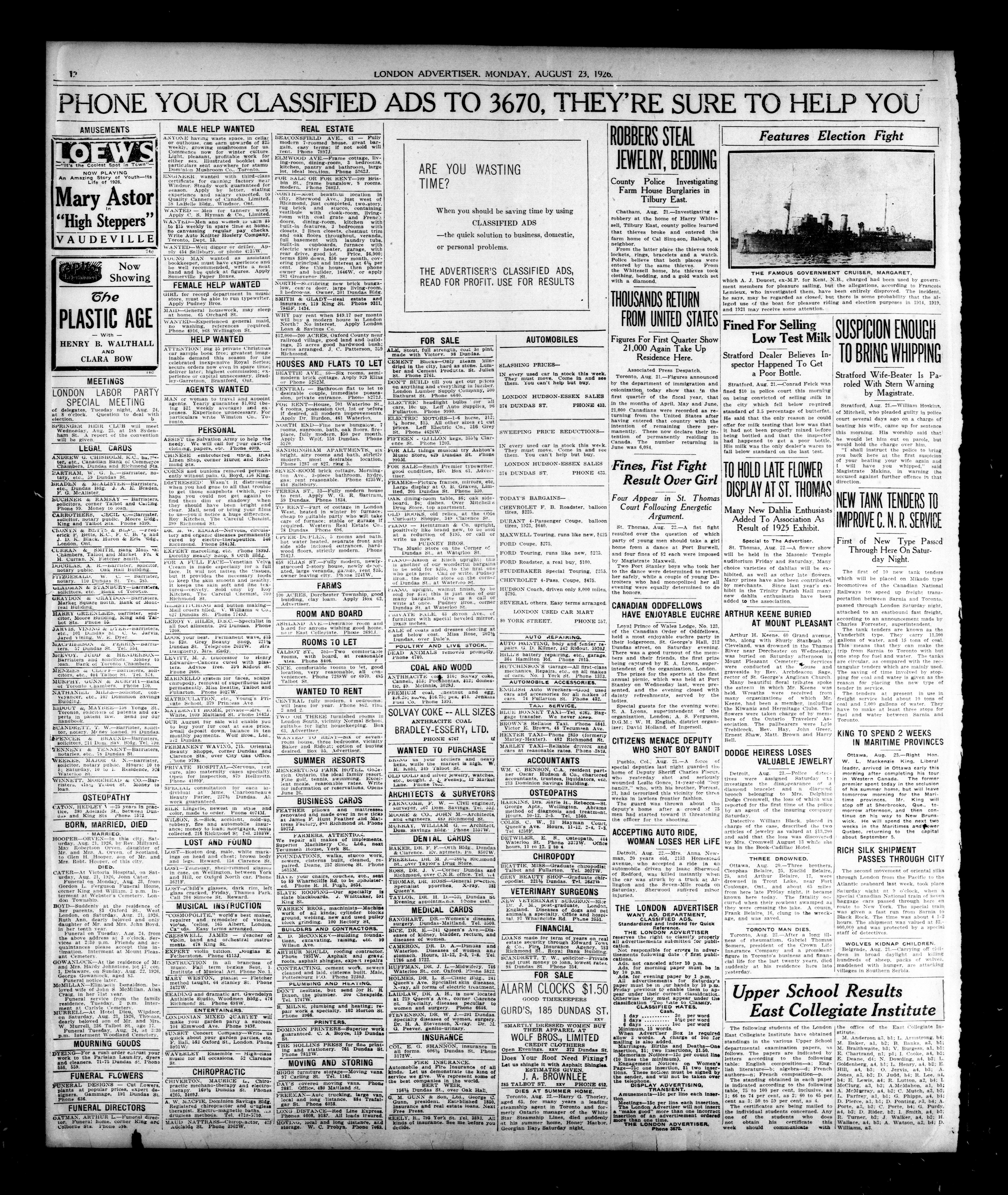 Help London, Ontario : London Advertiser Company, Limited, [1926]; 14 images, 0 with full-text search