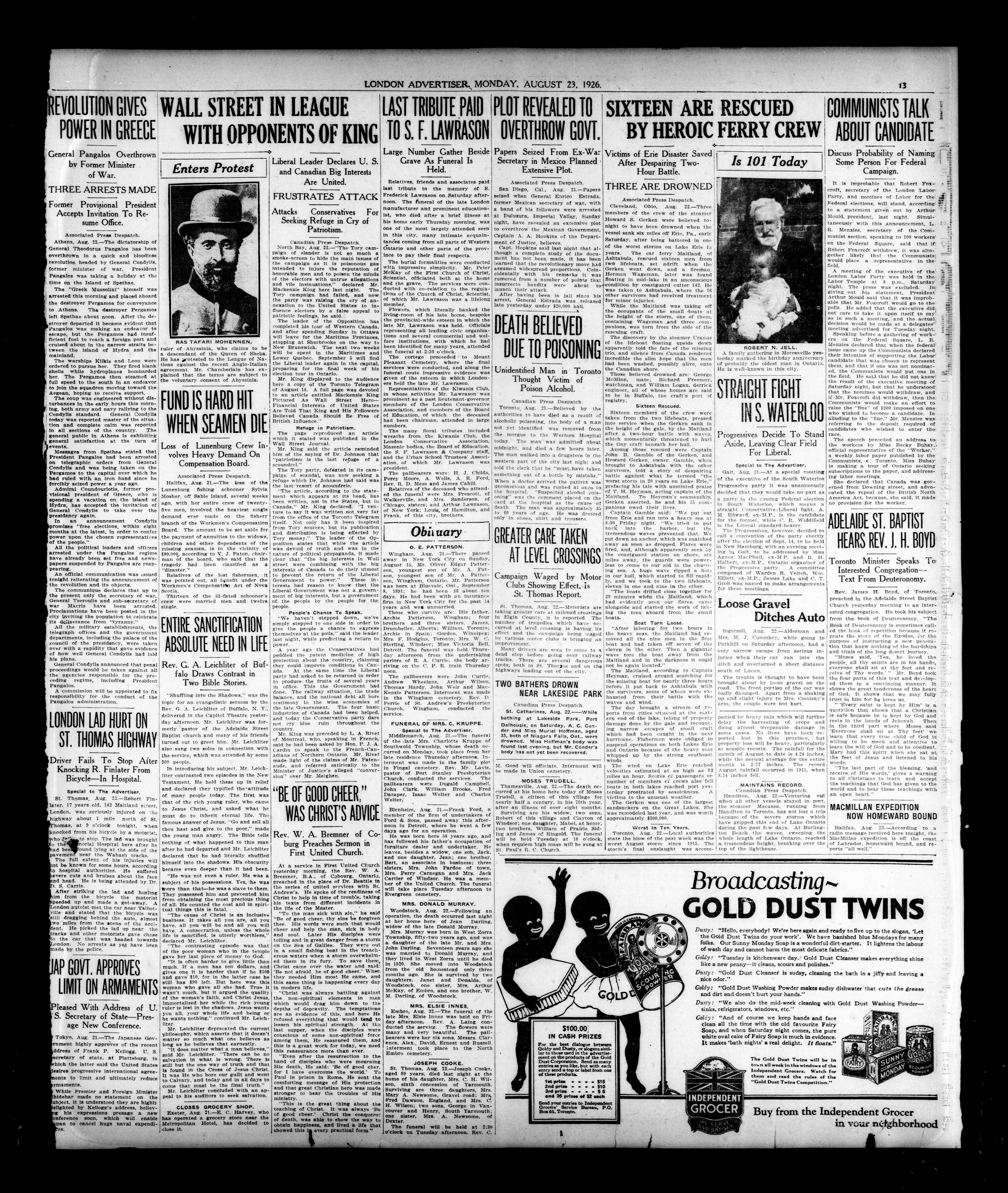 London, Ontario : London Advertiser Company, Limited, [1926]; 14 images, 0 avec recherche en texte intégral