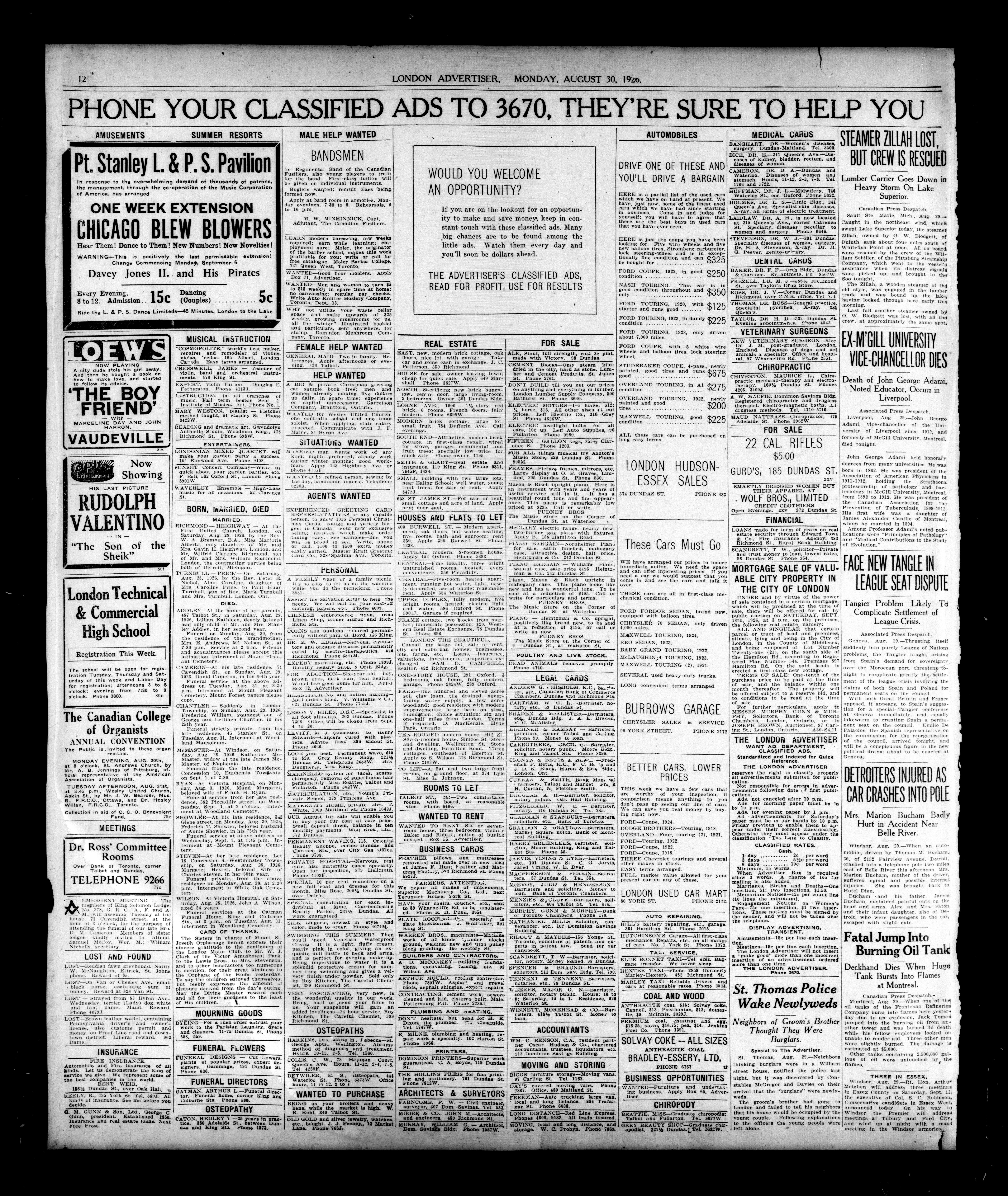 London, Ontario : London Advertiser Company, Limited, [1926]; 14 images, 0 with full-text search