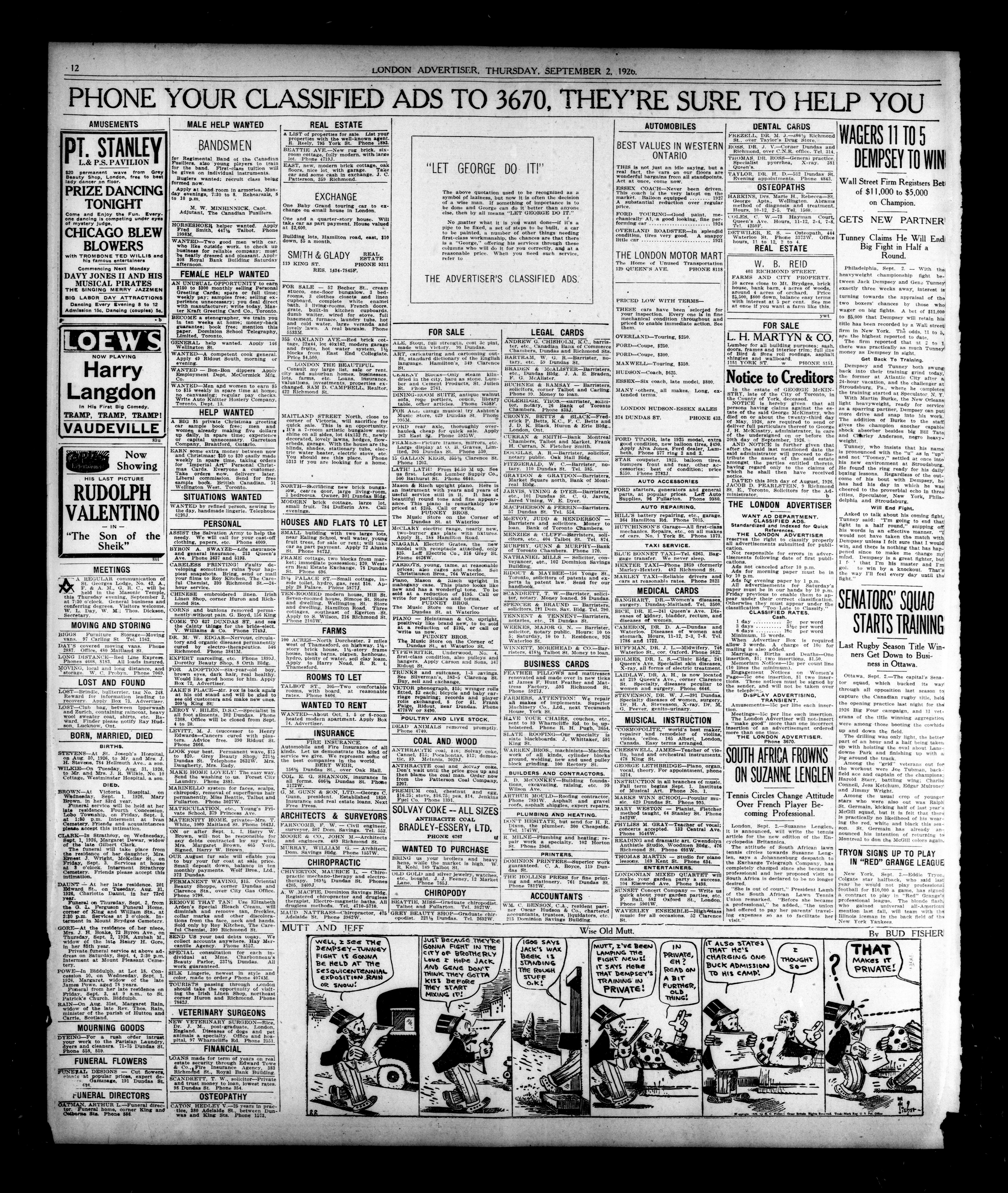 London Evening Advertiser. : London evening advertiser : 63rd Year, No. 24683 (September 2, 1926)