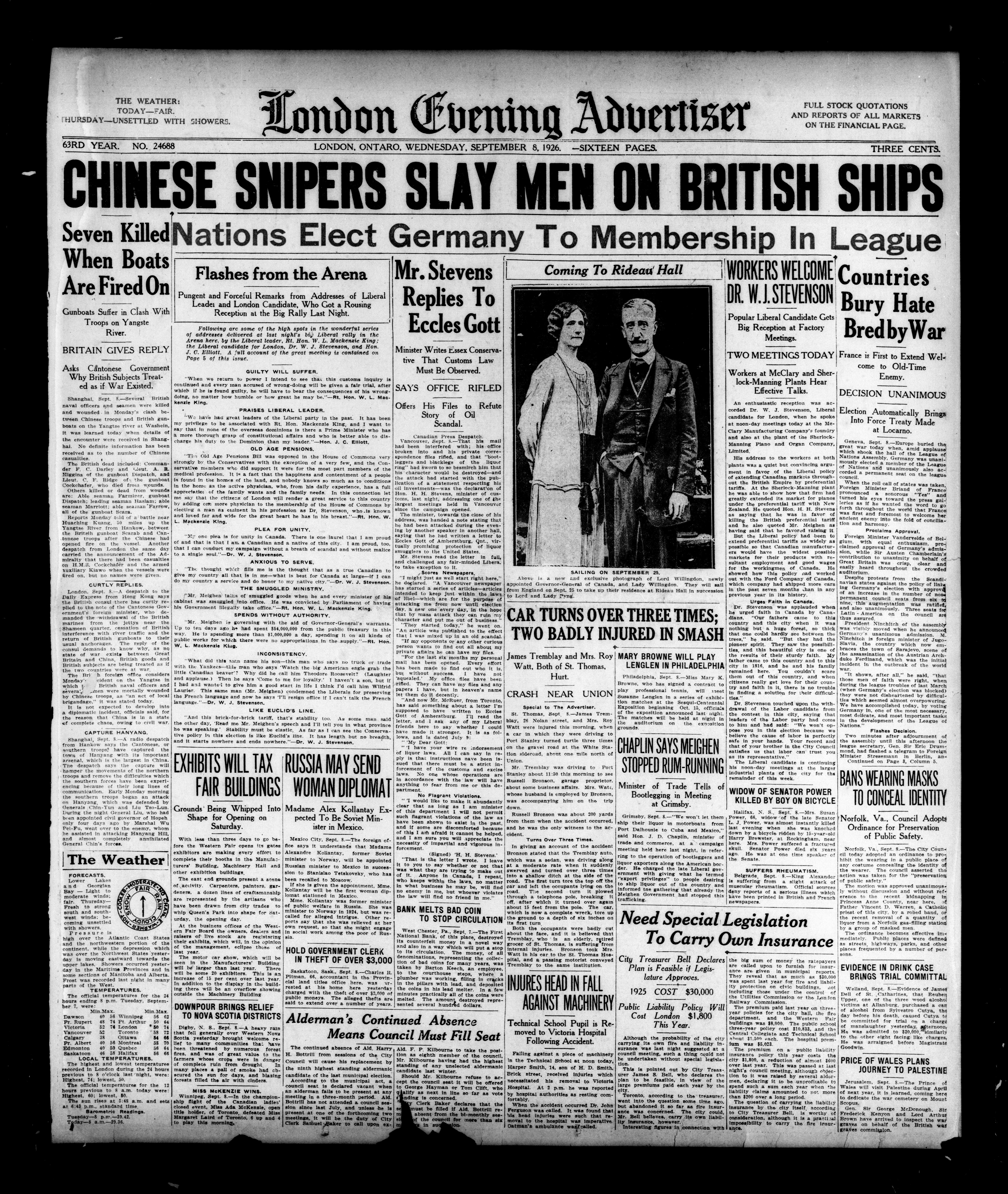 London, Ontario : London Advertiser Company, Limited, [1926]; 16 images, 0 avec recherche en texte intégral