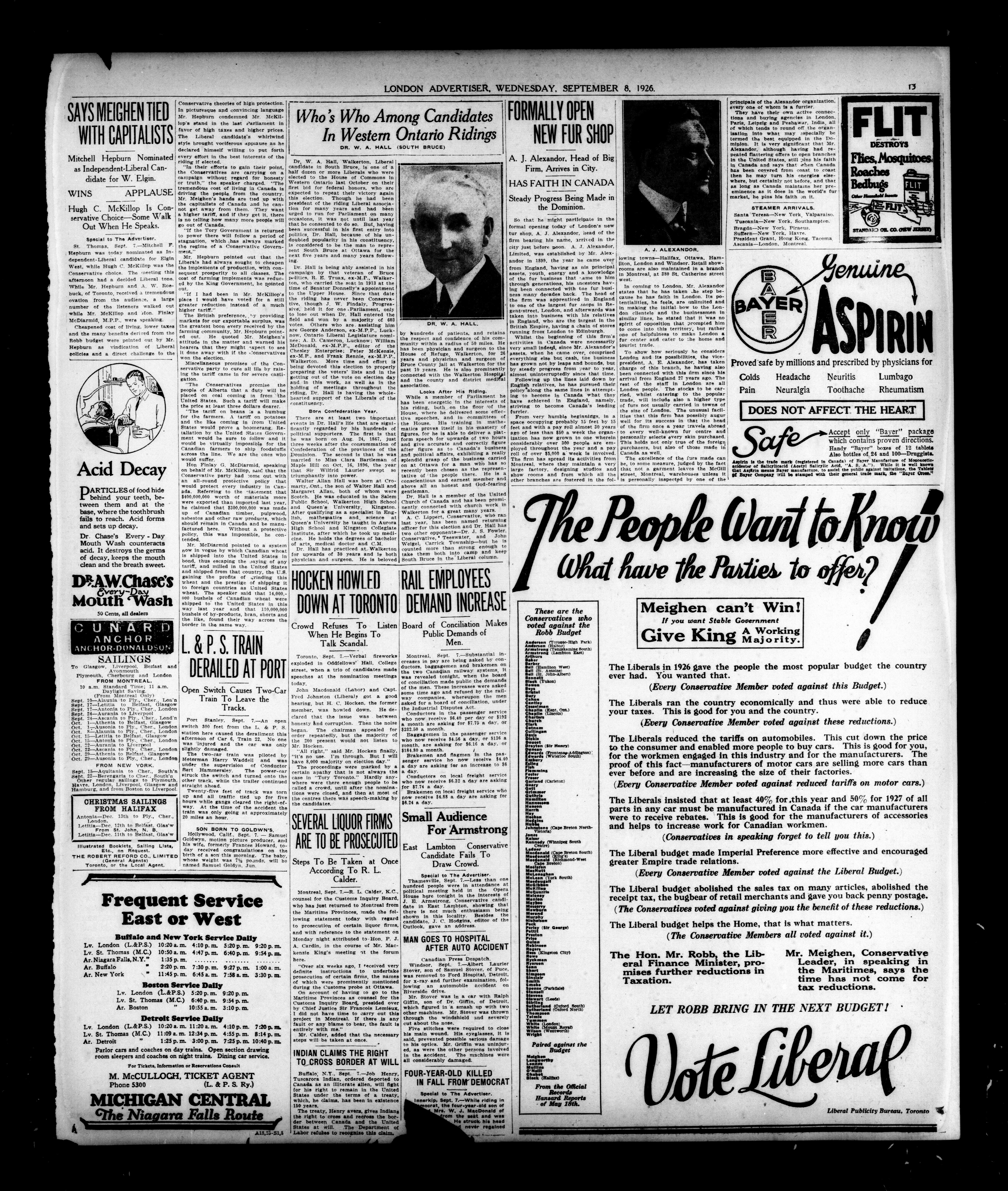 London, Ontario : London Advertiser Company, Limited, [1926]; 16 images, 0 avec recherche en texte intégral