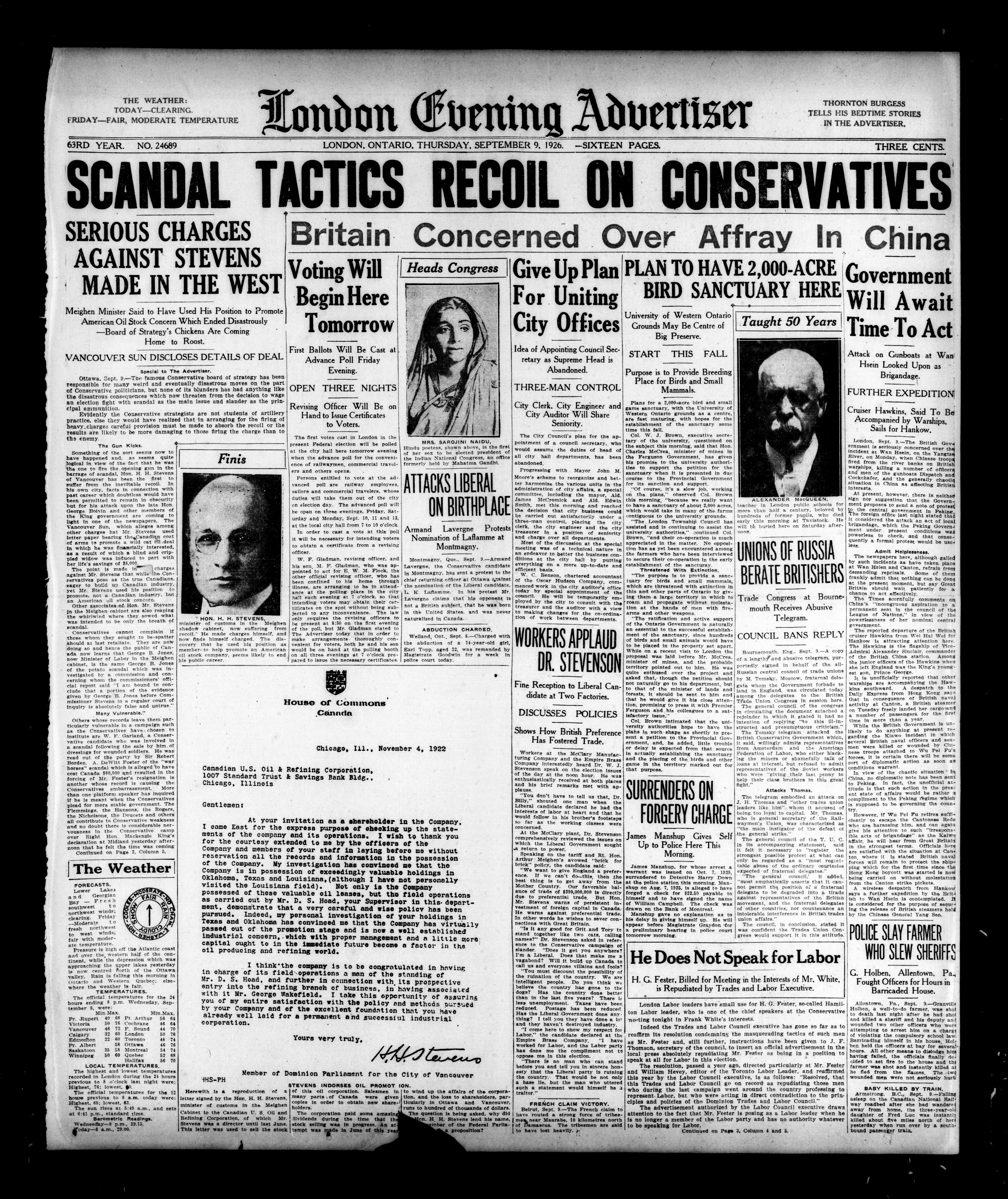 London, Ontario : London Advertiser Company, Limited, [1926]; 16 images, 0 avec recherche en texte intégral