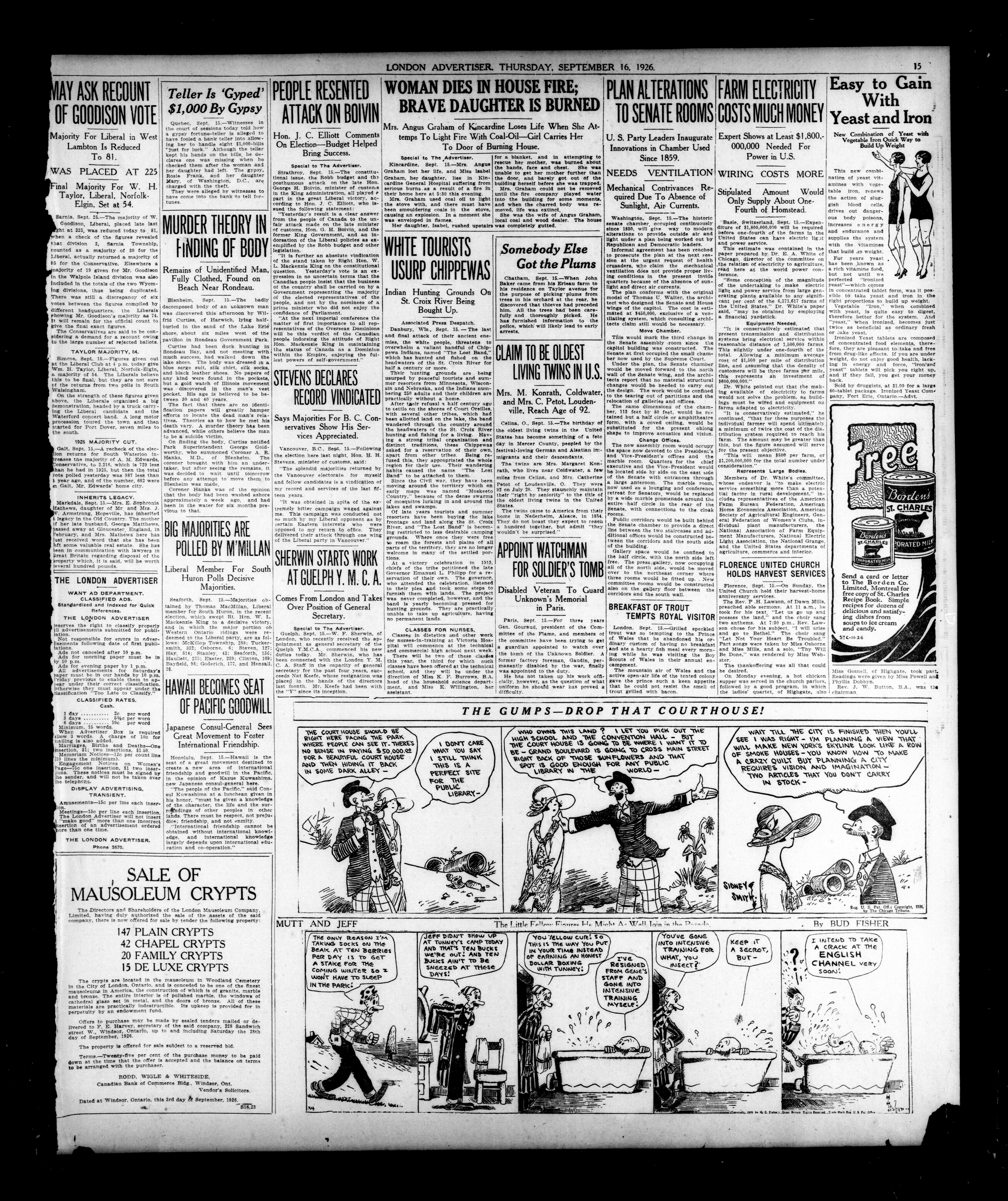 London, Ontario : London Advertiser Company, Limited, [1926]; 16 images, 0 with full-text search