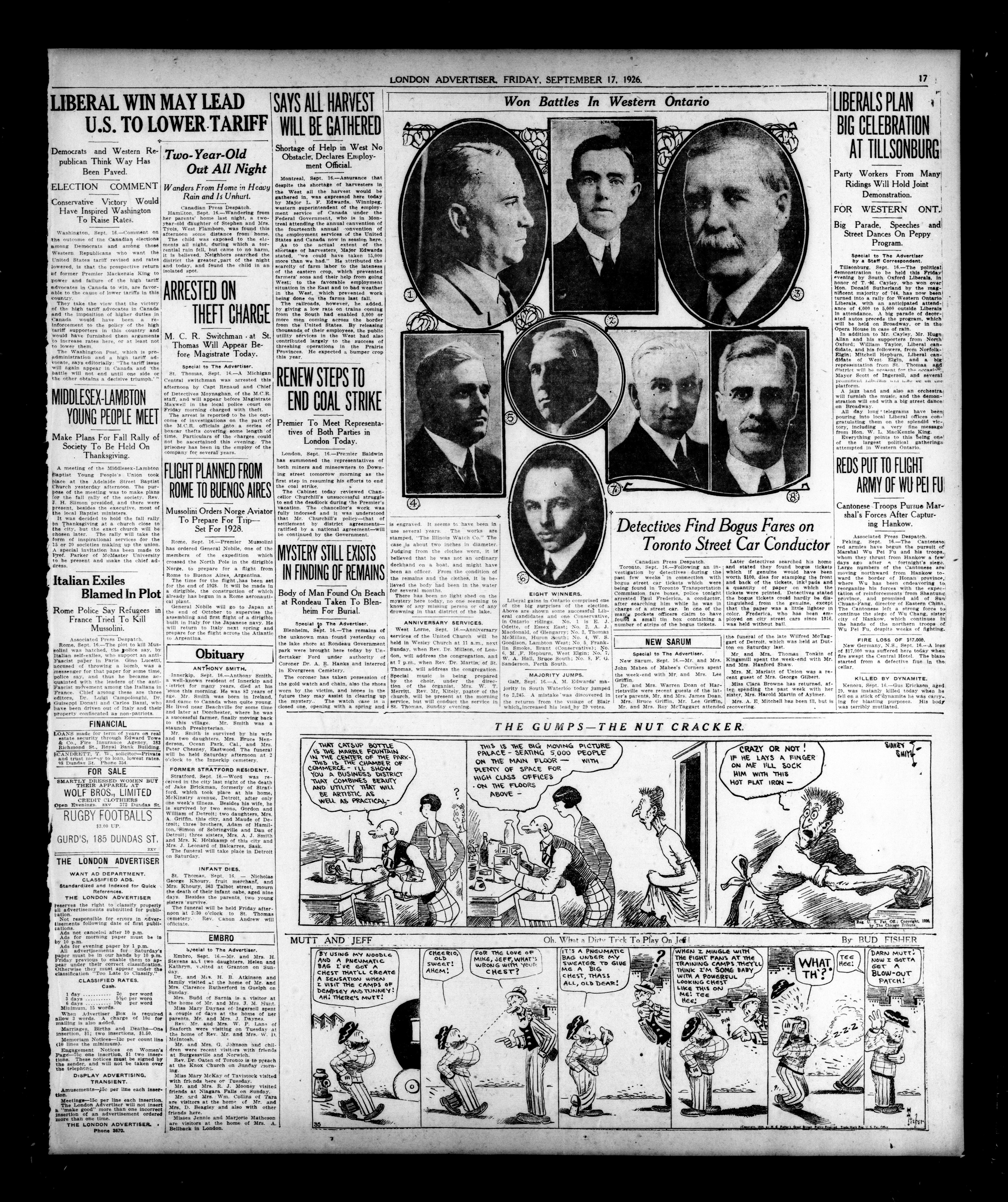London, Ontario : London Advertiser Company, Limited, [1926]; 18 images, 0 avec recherche en texte intégral