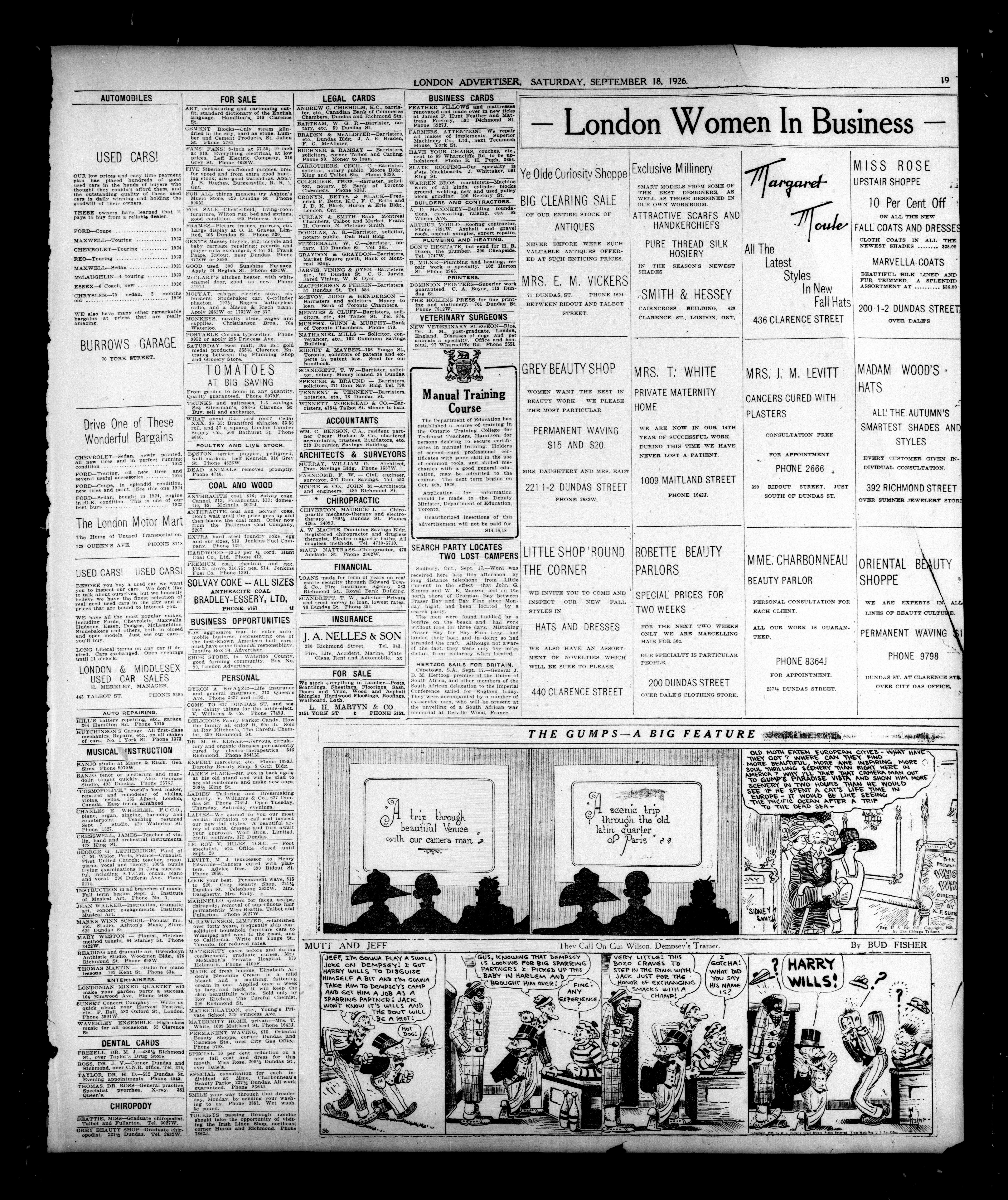 London Evening Advertiser. : London evening advertiser : 63rd Year, No. 24697 (September 18, 1926)