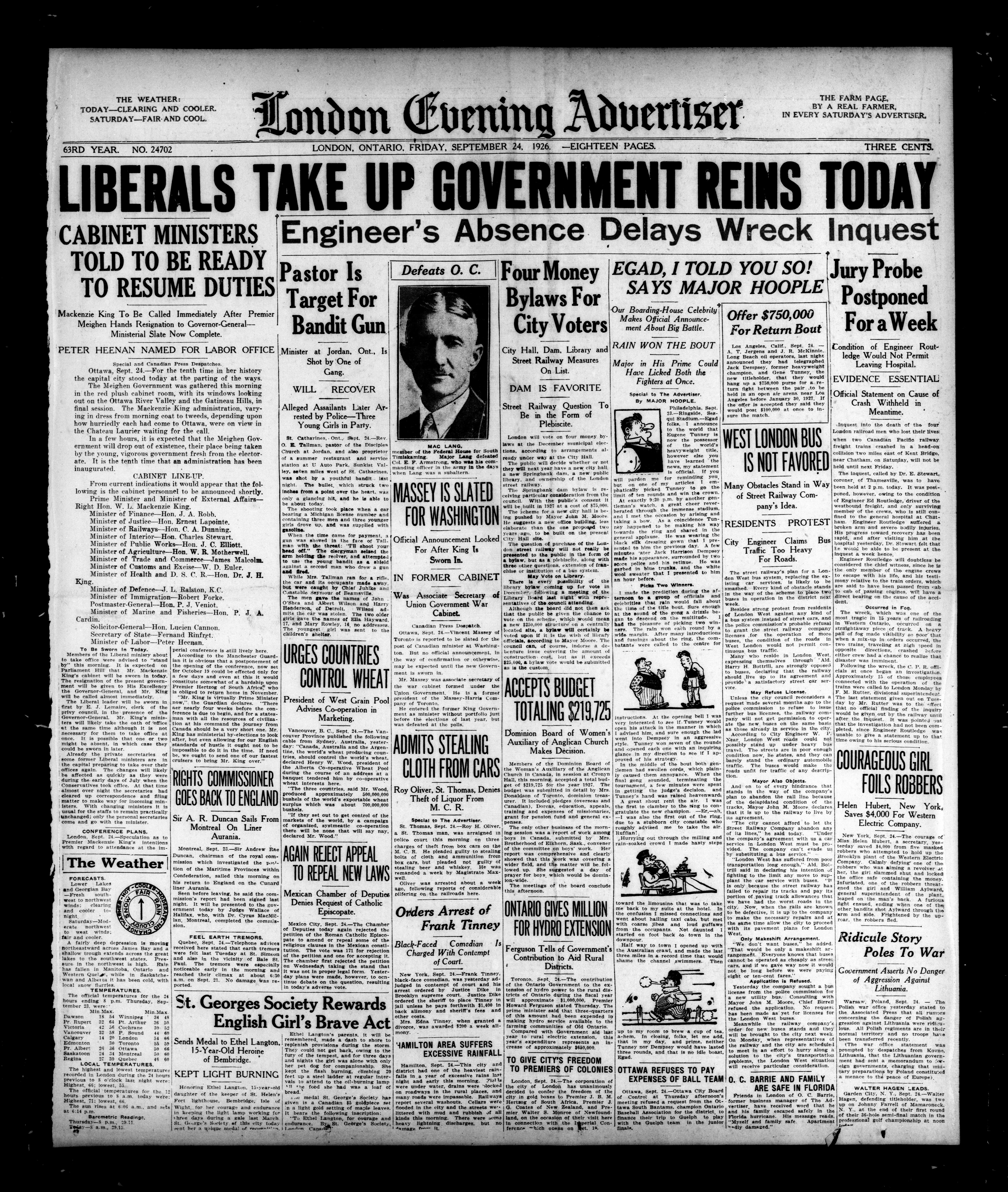 London, Ontario : London Advertiser Company, Limited, [1926]; 18 images, 0 avec recherche en texte intégral