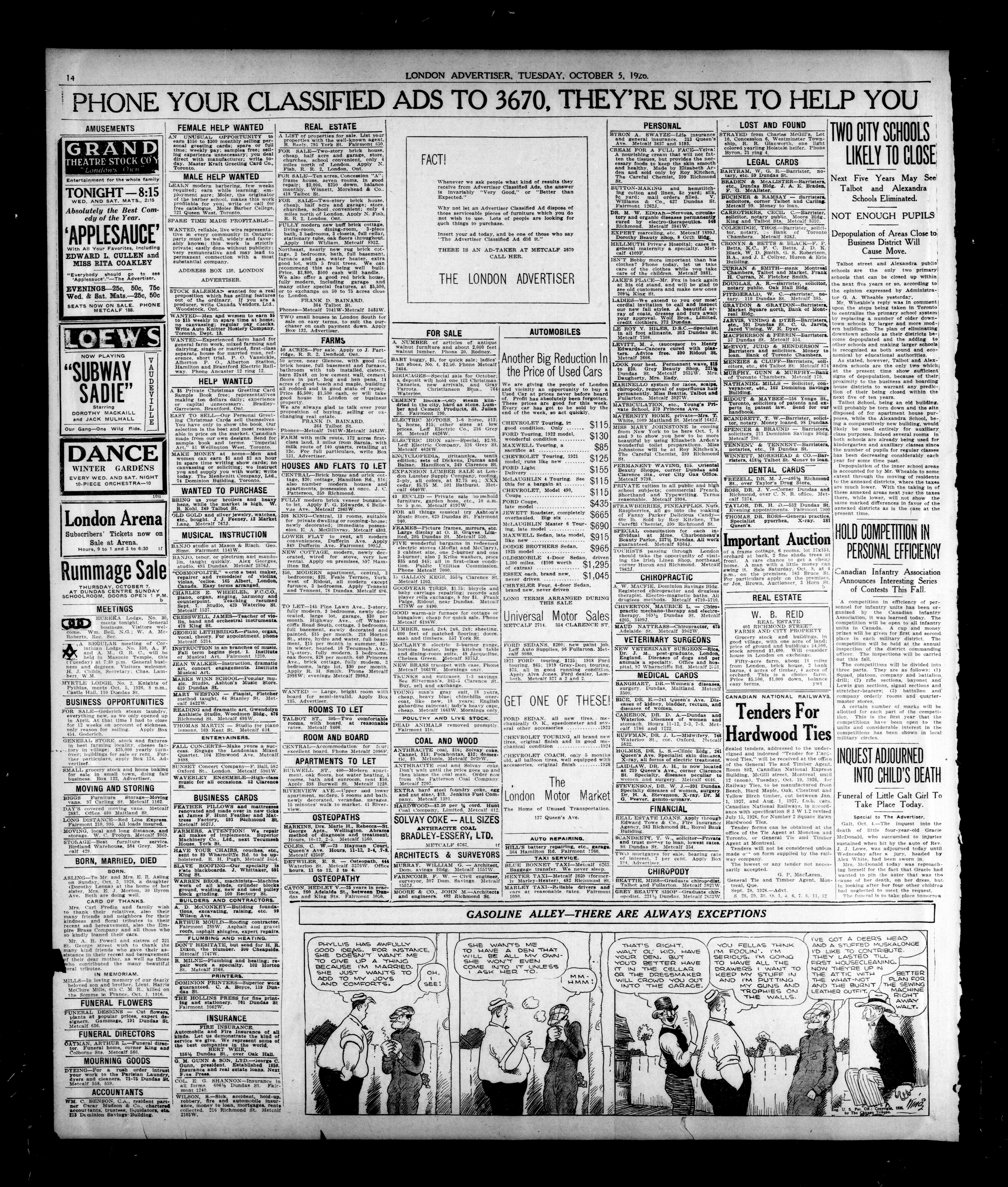 London, Ontario : London Advertiser Company, Limited, [1926]; 16 images, 0 avec recherche en texte intégral