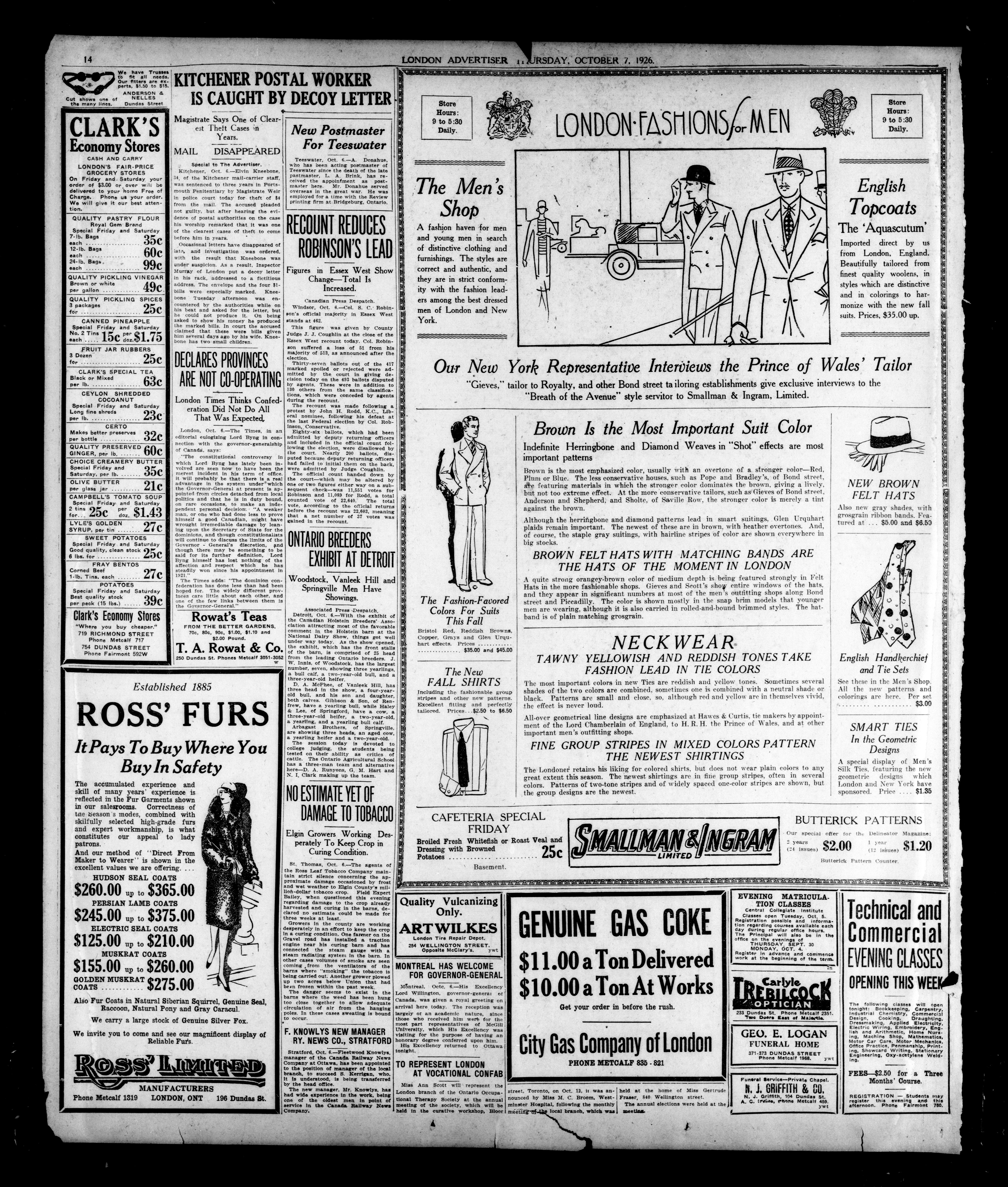 London, Ontario : London Advertiser Company, Limited, [1926]; 14 images, 0 avec recherche en texte intégral