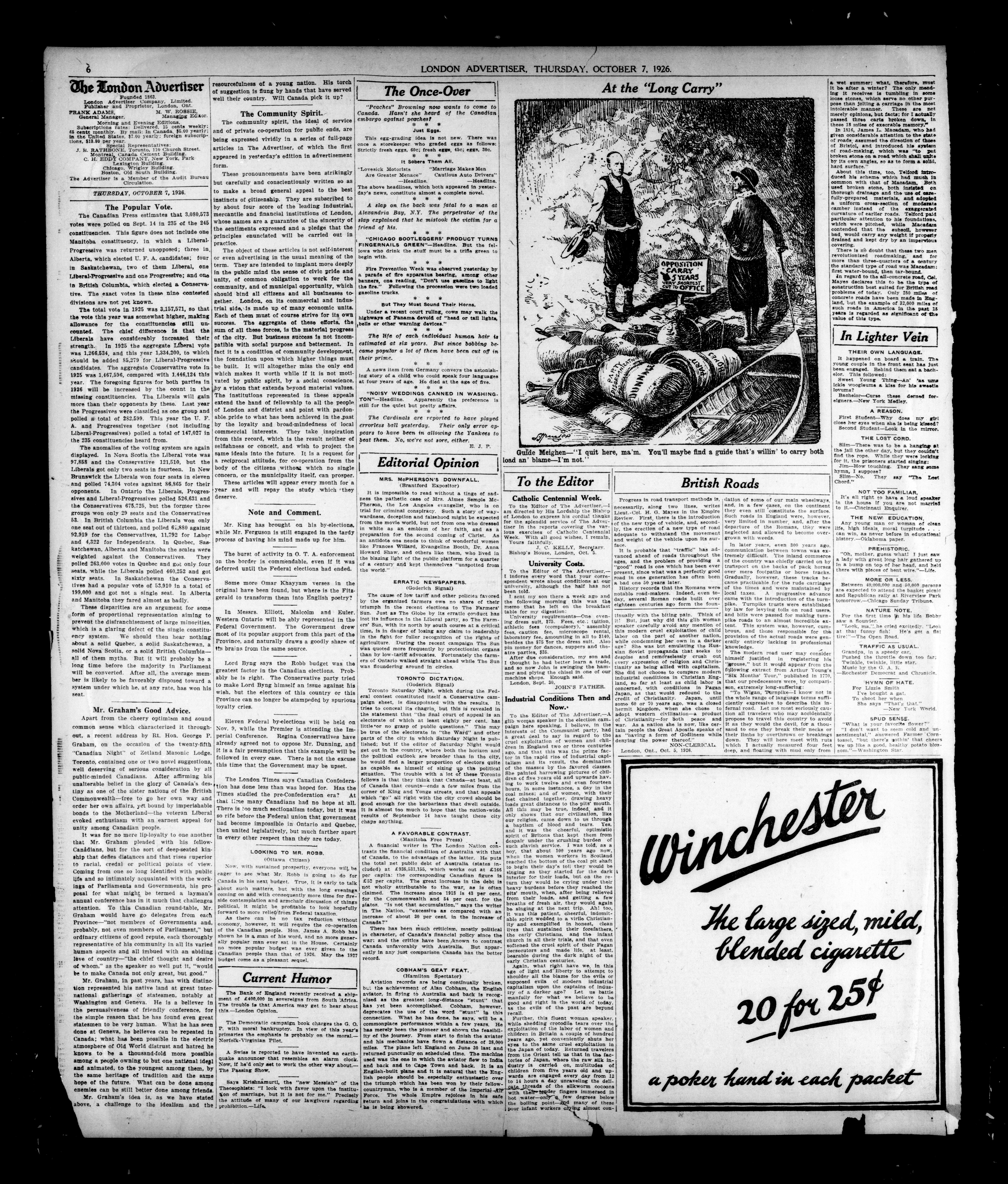 London, Ontario : London Advertiser Company, Limited, [1926]; 14 images, 0 avec recherche en texte intégral