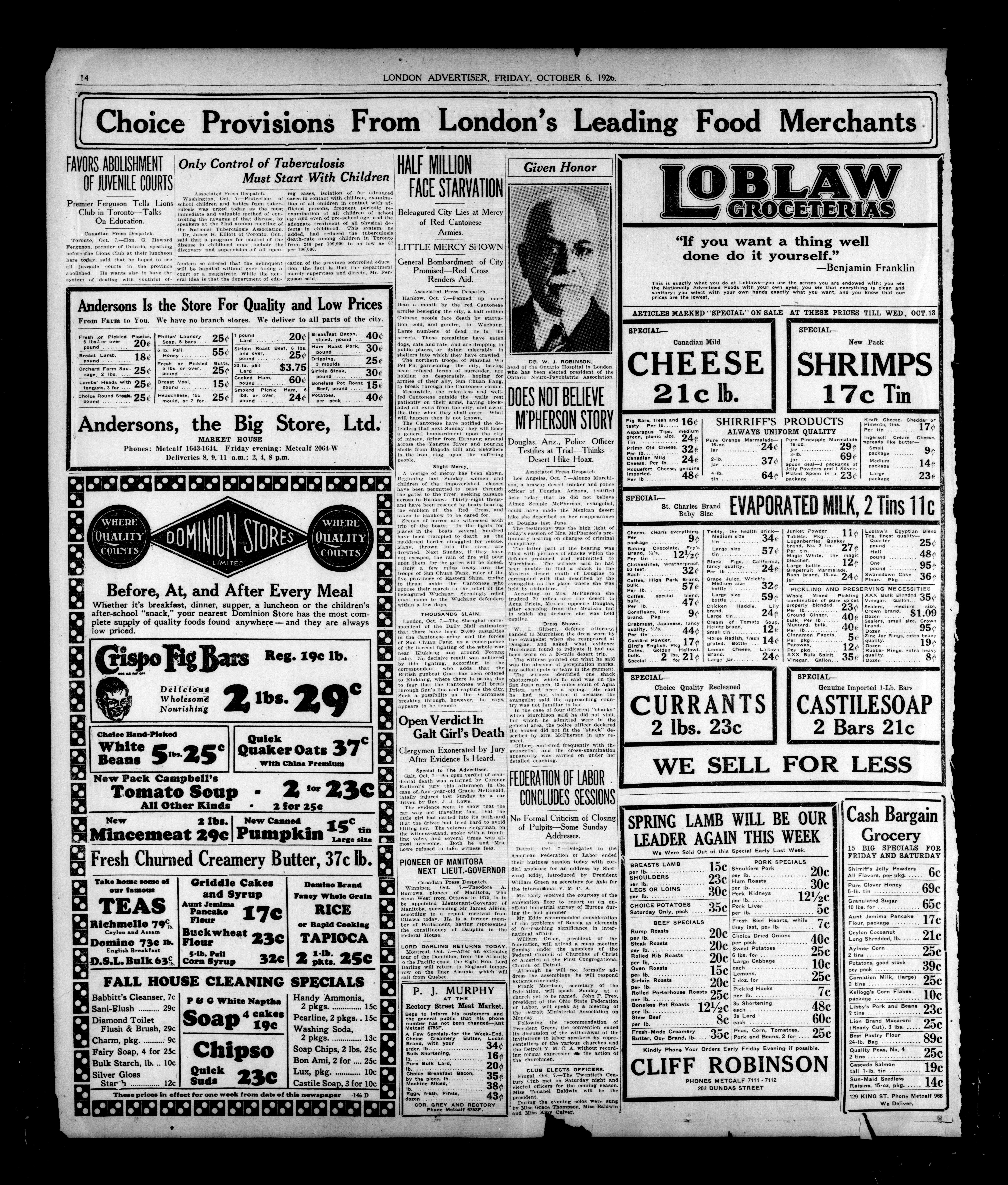 Aide London, Ontario : London Advertiser Company, Limited, [1926]; 20 images, 0 avec recherche en texte intégral