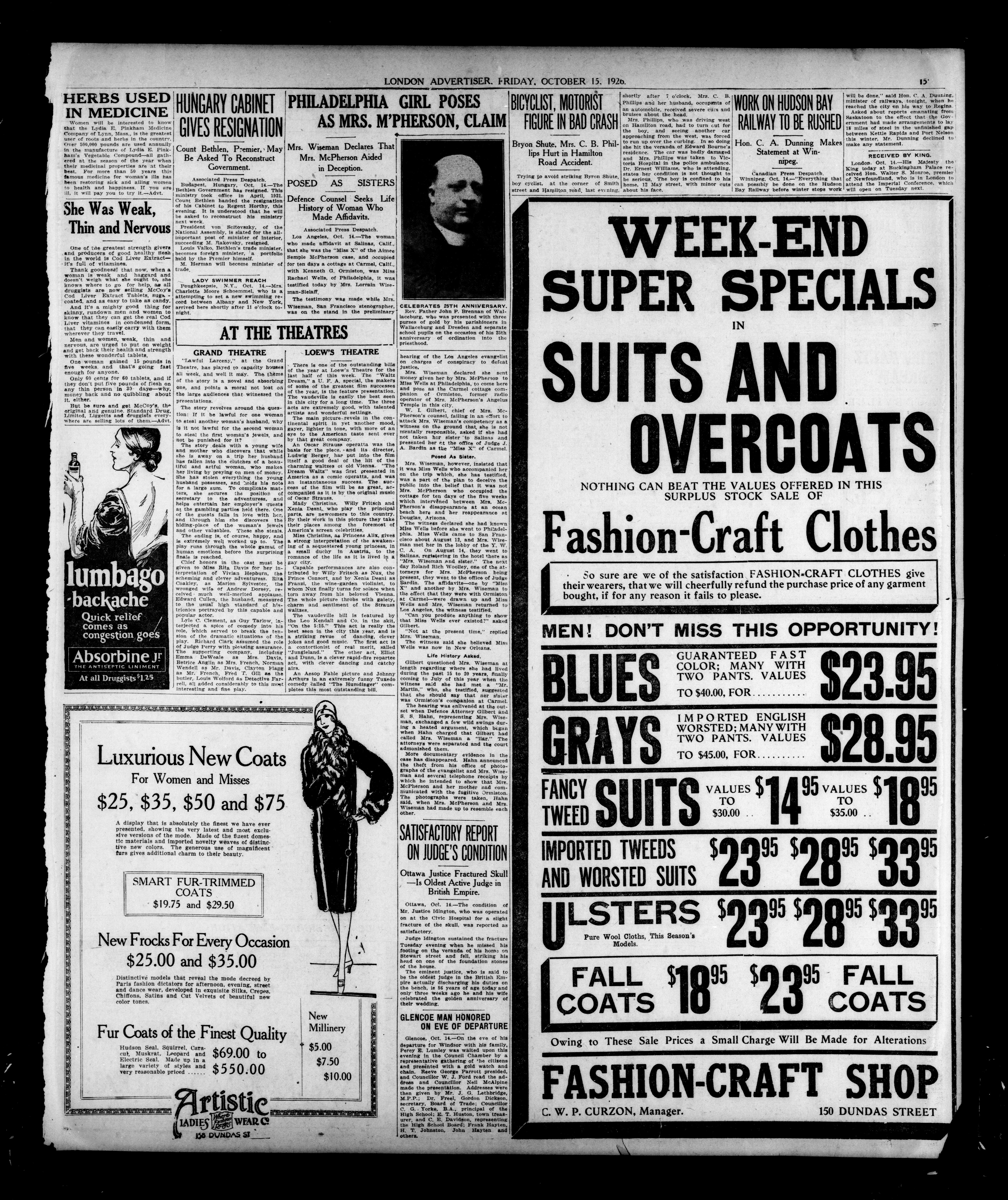 London, Ontario : London Advertiser Company, Limited, [1926]; 18 images, 0 with full-text search
